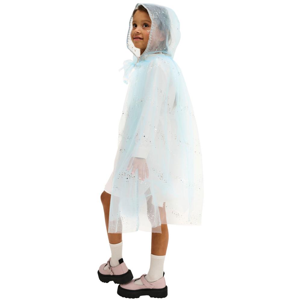 La fantasien flyte med denne glitrende utkledningskappen som barn elsker. Den lyseblå designen med sølvprikker samt en praktisk hette gjør hvert eventyr magisk. Perfekt kappe med hette som barn kan bruke ved alle anledninger.