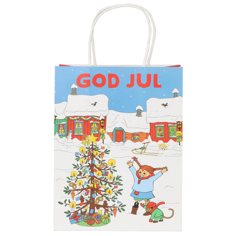 Feir høytiden med en sjarmerende julepose som sprer glede. Denne gaveposen med julemotiv fra Pippi Langstrømpe er prydet med herlige farger og passer perfekt som julegavepose til både store og små.