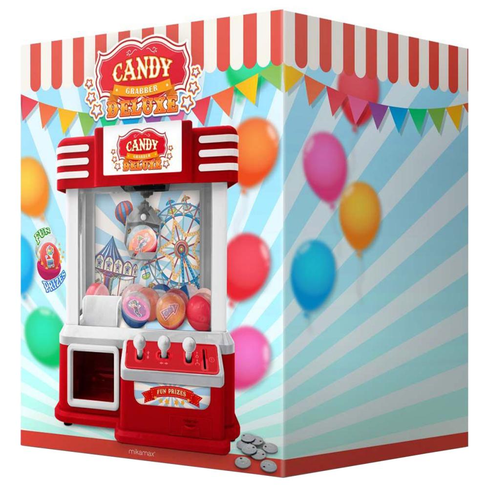 Godterimaskin med Klo Deluxe omfatter en godteridispenser med tolv mynter, ti premiekuler og seksten kort for å legge i premiekulene. Den har også lys og musikk med justerbart volum og kan drives enten med USB-kabel eller 3 x AA-batterier.