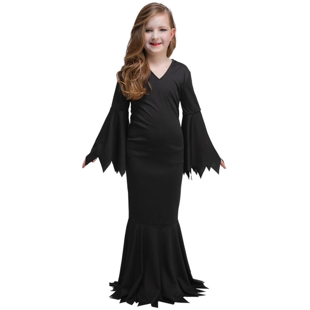 Forvandle barnet ditt til Halloween-festens mystiske midtpunkt med dette gotiske jentekostymet. Perfekt som heksedrakt for barn eller Morticia Addams kostyme, med sin elegante svarte kjole som Halloween aldri glemmer.