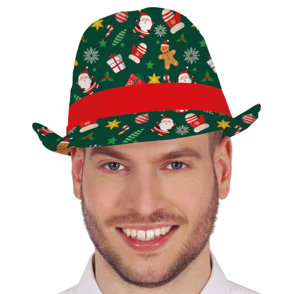 Grønn Trilby Hatt med Julemotiv