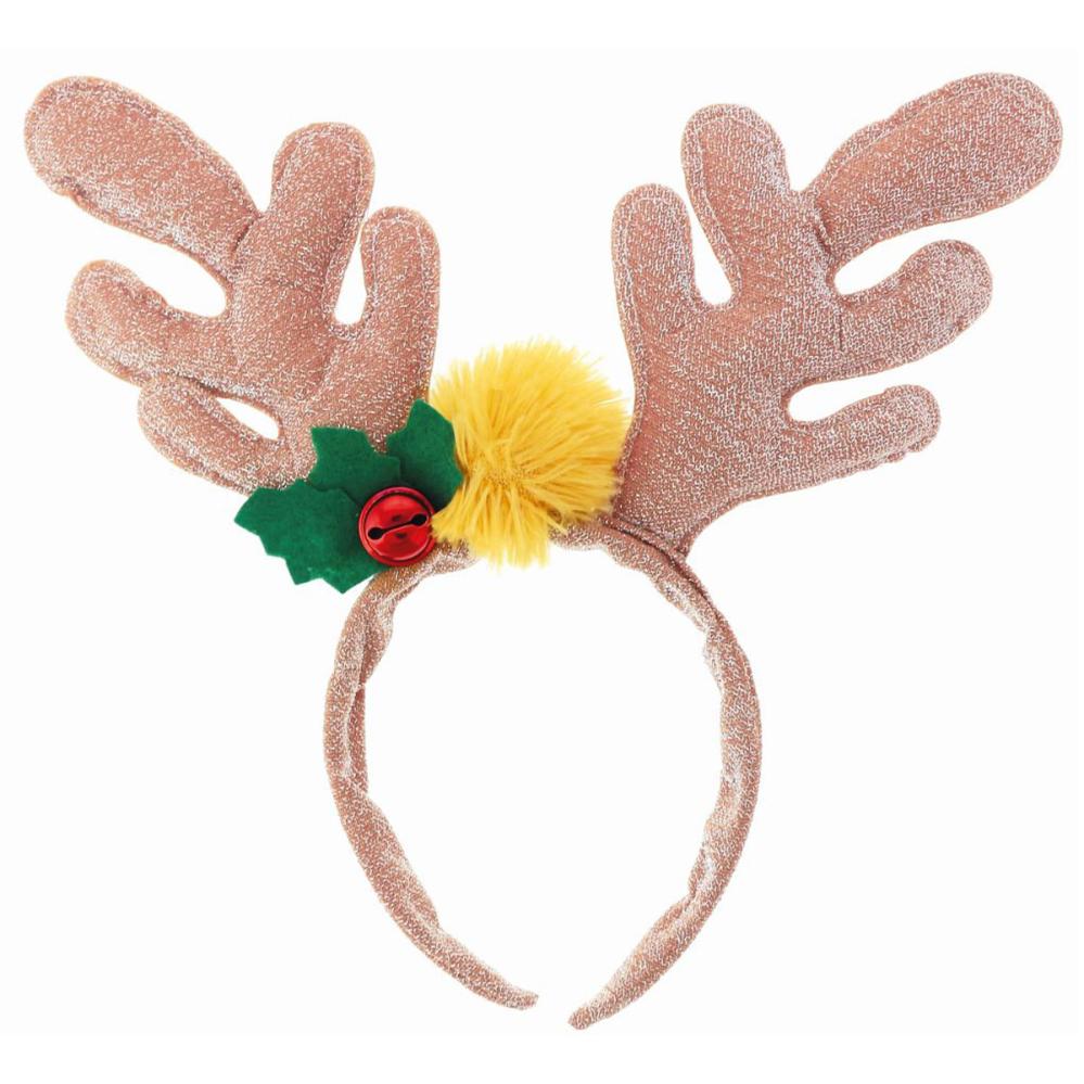 Julehårbøylen i gull har skimrende glitter og et behagelig feste, da selve hårbøylen sitter stabilt med reinsdyrhornene som reiser seg stilfullt, og uttrykket passer like bra til et kostymeball som til fest. Denne hodeaccessoiren er egnet for julekostyme om vinteren.