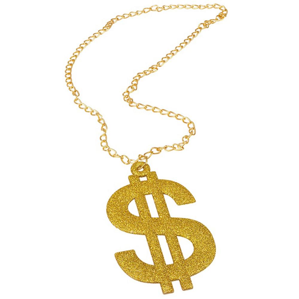 Halskjede med Glitrende Dollartegn Gull er et gullfarget halskjede med et stort glitrende dollartegn.