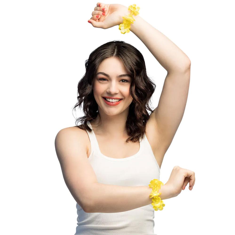 Et blomsterarmbånd passer til stranden, festen og temakvelder og har elastisk tråd som sitter behagelig og gjør det lett å bruke hele dagen. Dette armbåndet gir en følelse av Hawaii og blir et fargerikt innslag om sommeren.