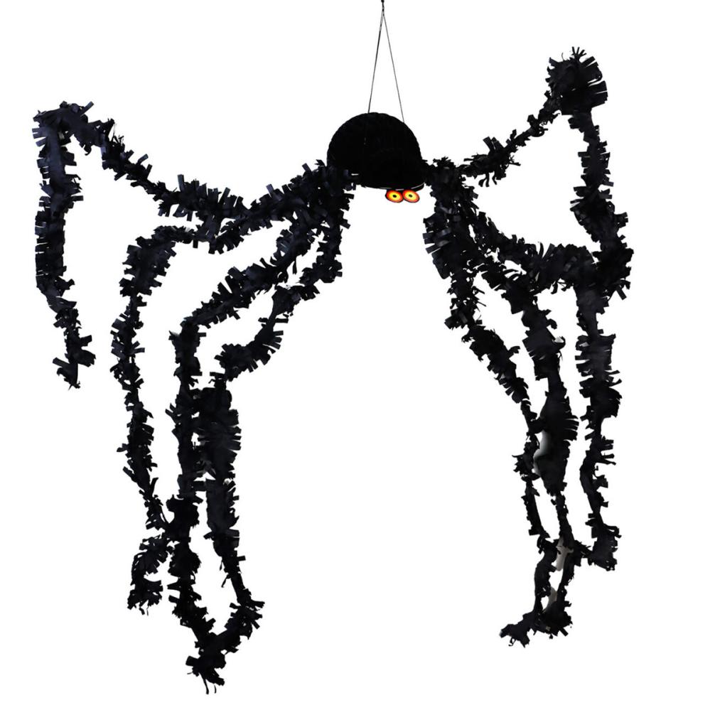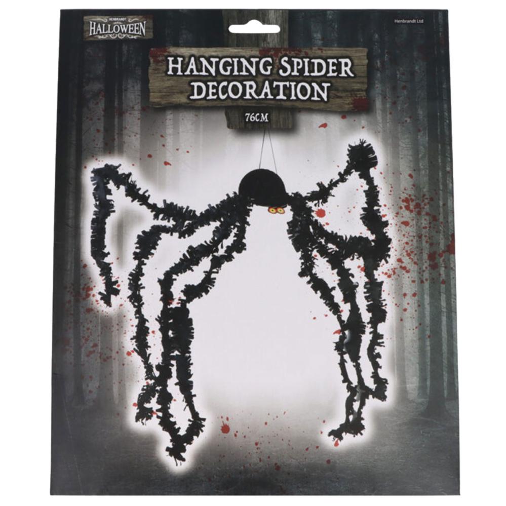 Hengende Edderkopp Dekorasjon er en halloweendekorasjon i form av en svart edderkopp. Selve edderkoppen kommer i form av en honeycomb med målene 11x21 cm, og den har ben som måler 76 cm. Dekorasjonen henges enkelt opp ved hjelp av den fastmonterte svarte snoren, og fire binders følger med for å holde sammen honeycomben.