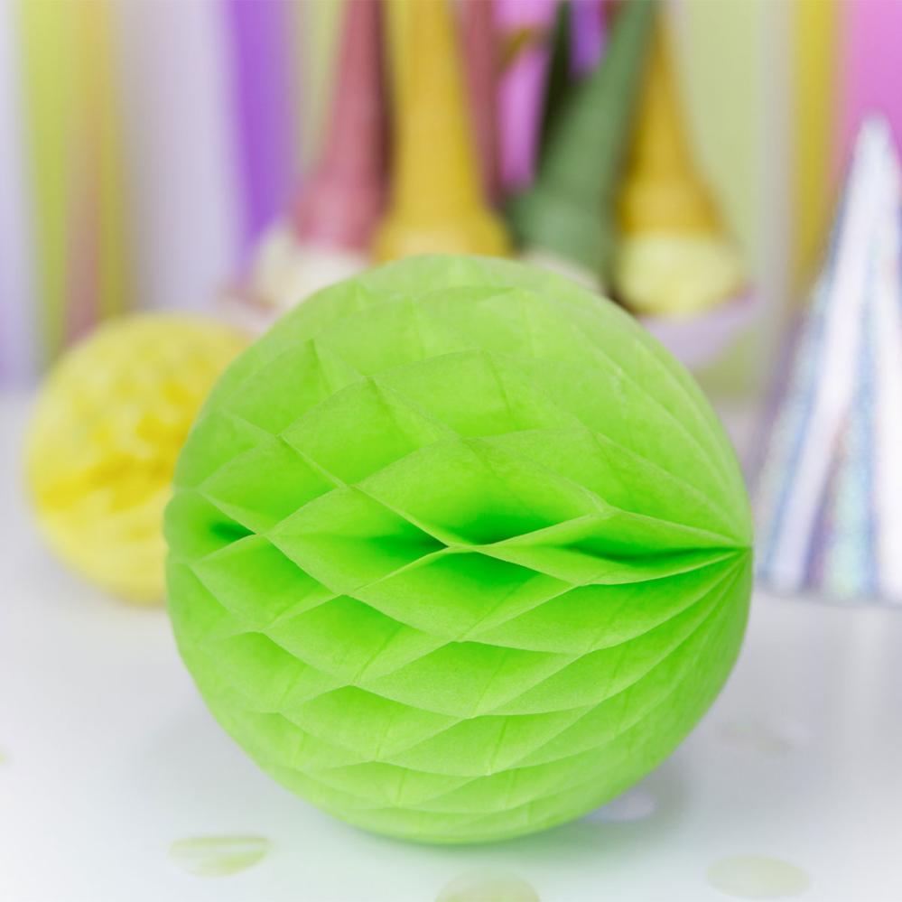 Med sitt lekne uttrykk gir en papirkule som dekorasjon rommet en ekstra festlig stemning. En hengende dekorasjon av en grønn honeycomb i papir passer fint både til feiringer og til hverdagen. Den eplegrønne fargen trekker lett blikkene til seg.