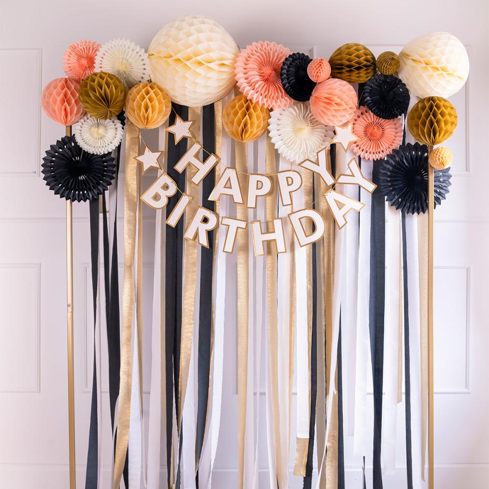 Som en hengende dekorasjon sprer denne gule honeycomb av papir sin sjarm uansett om den brukes som studentdekorasjon eller midsommerdekorasjon. En dekorasjon i form av papirball passer like fint i festlokalet som ved studentfeiringen.