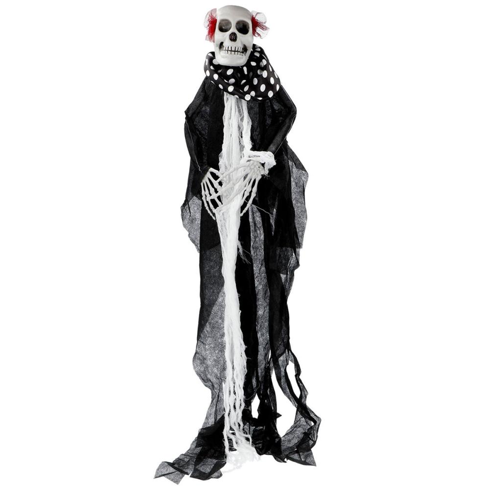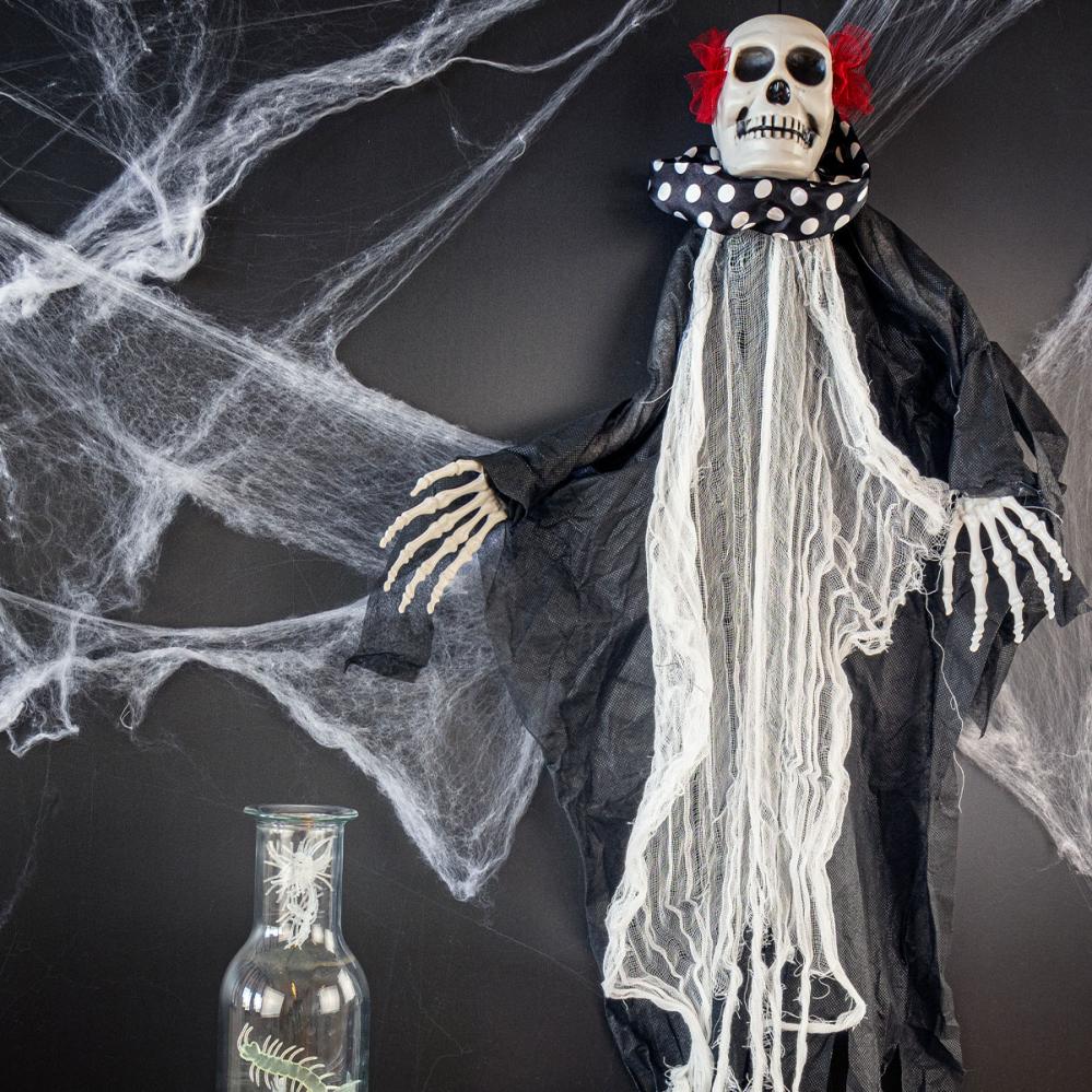 Skap riktig stemning med denne hengende Halloween skjelettdekorasjon i form av en skummel klovn. Perfekt som Halloween pynt med bøybare armer og enkel opphenging for en effektfull halloweenfest dekorasjon både inne og ute.