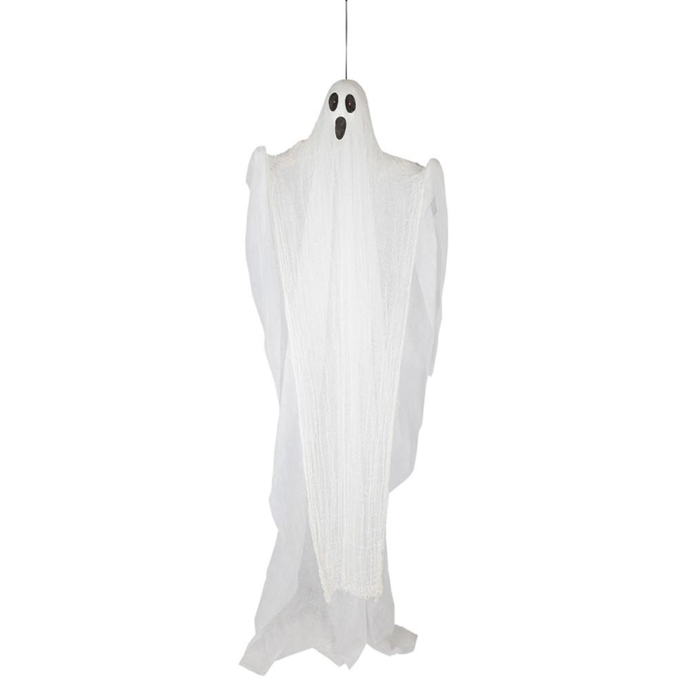 Hengende Spøkelse med Lys 215 cm omfatter en hengende dekorasjon i form av et stort hvitt spøkelse med innebygd belysning som lyser opp.
