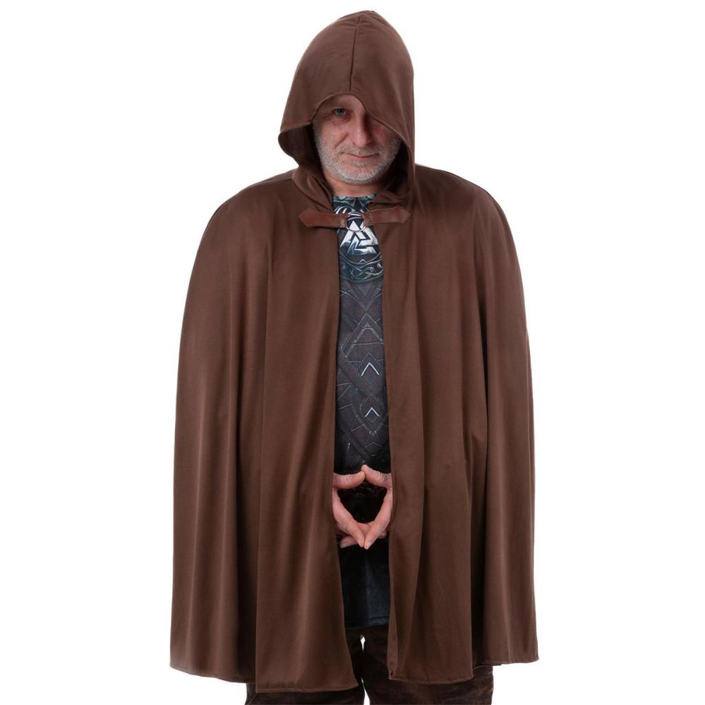 Historisk Kappe med Hette Brun er en brun halvlang kappe med en klassisk hette som er ideell å bære over tunikaer, kjoler eller rustninger for en autentisk tidsriktig look. Den er perfekt for arrangementer med middelalder, renessanse- eller fantasytema.