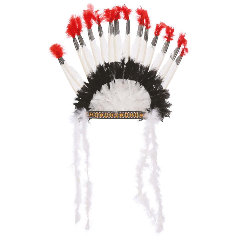 Et hodeplagg som passer perfekt til indianertema og gir en festlig følelse. Fjærhodeplagget er utformet for å ligne en tradisjonell indianerhatt og har fargerike fjær. Denne varianten er populær til maskerade eller halloween med et tema rundt indianere.
