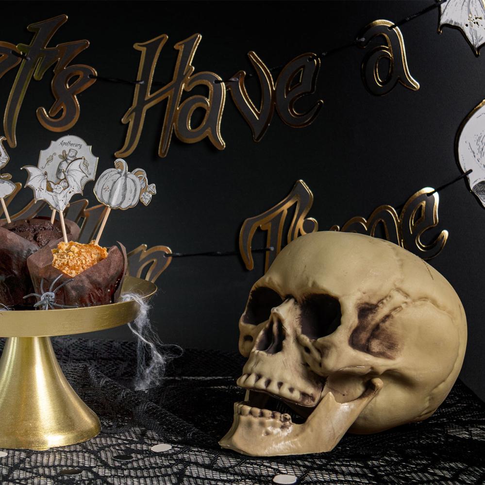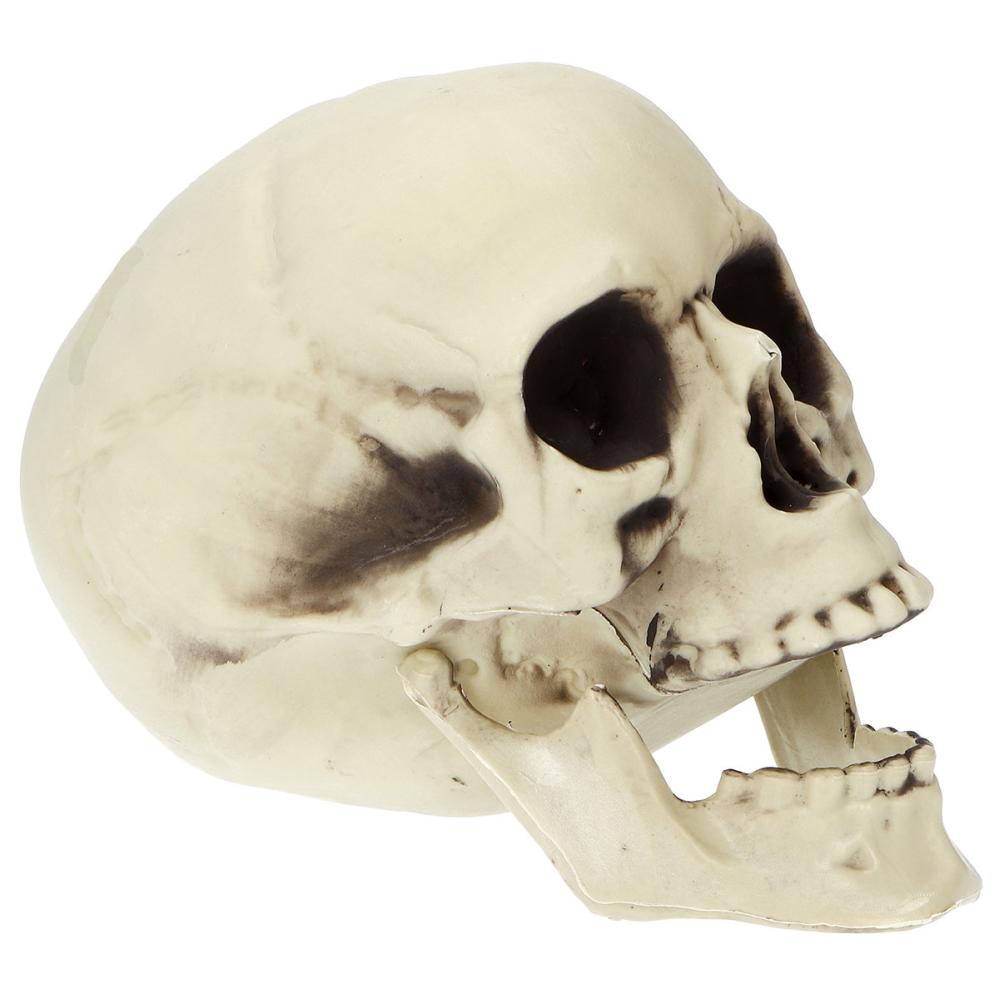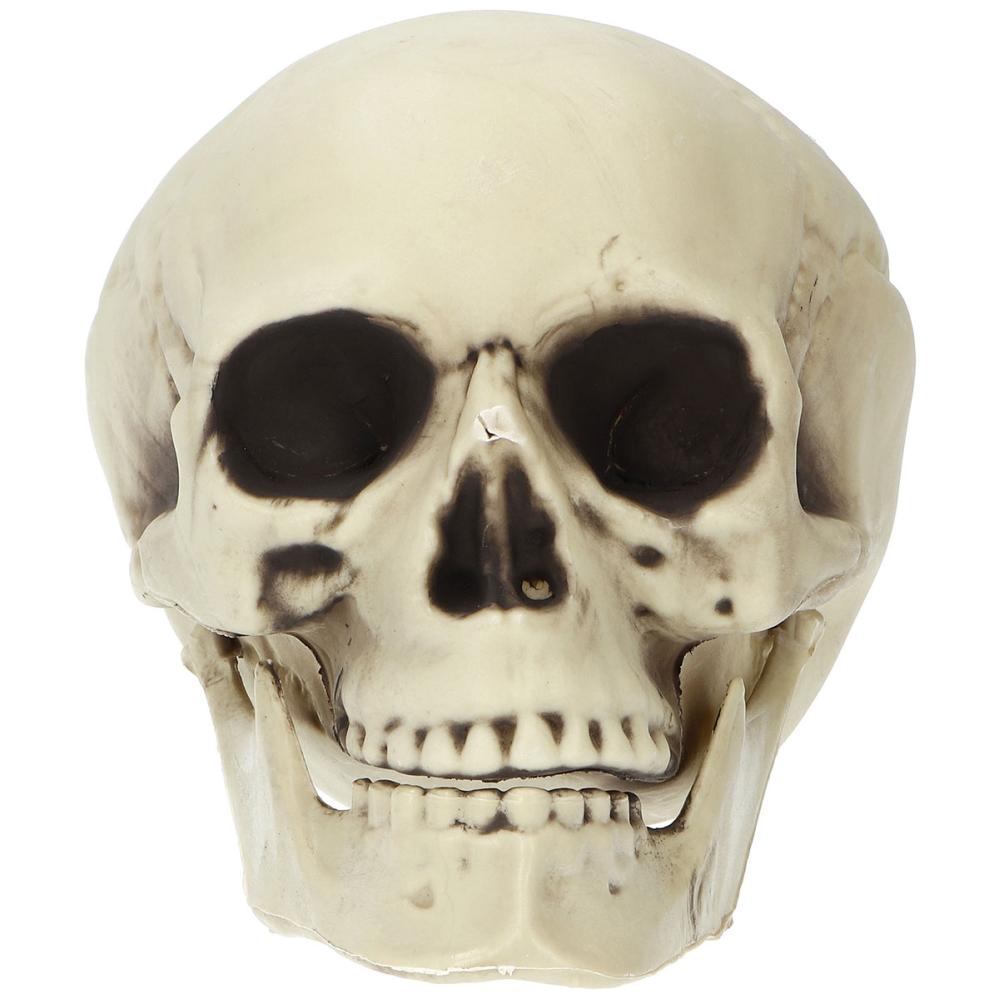 Sett stemningen på din Halloween temafest med en realistisk hodeskalle dekorasjon. Denne skremmende hodeskallen i plast har detaljer som imponerer og skaper en uhyggelig effekt blant gjestene.
