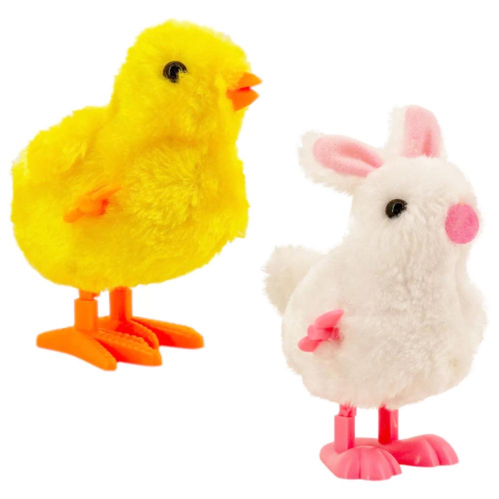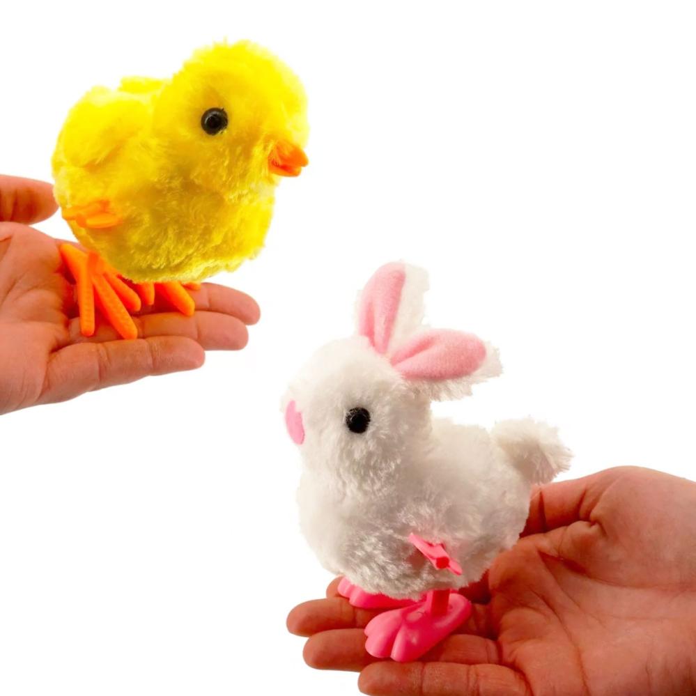 Denne sjarmerende påskeleken skaper glede når den hopper fremover. Med en enkel vri på nøkkelen blir denne hoppende leken i form av en kylling eller hare en morsom overraskelse for barn.