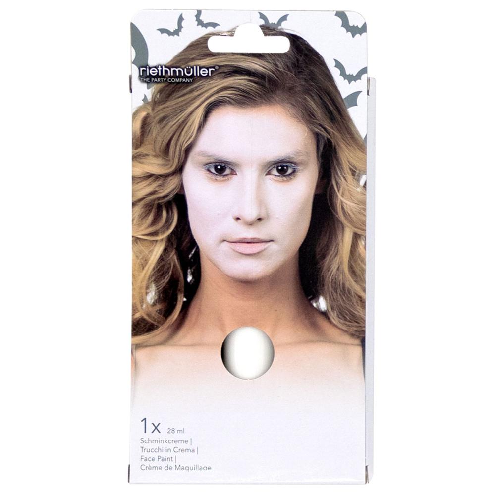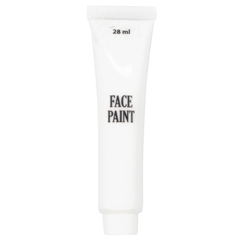 Hvit Ansiktsmaling 28 ml er en hvit ansiktsmaling på tube. Ansiktsmalingen er lett å påføre og lett å fjerne med såpe og vann.