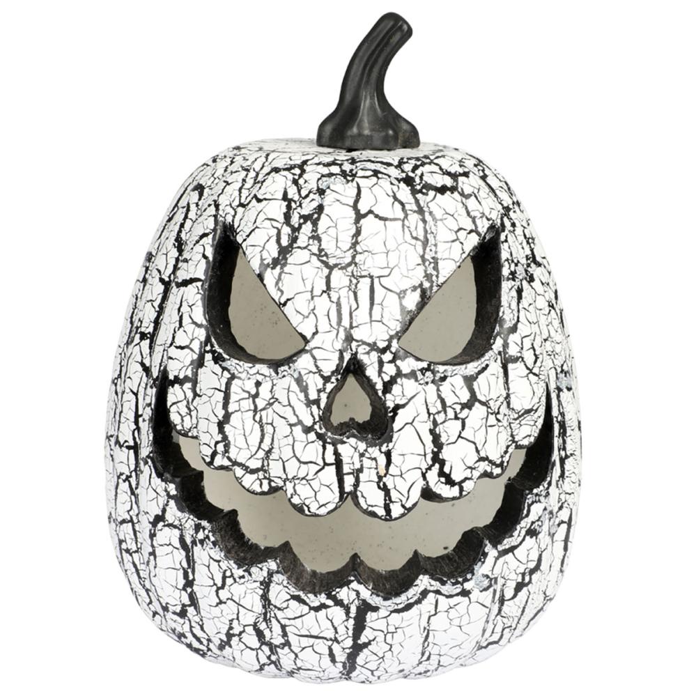 Gi Halloweenfesten din en stilfull vri med en hvit gresskardekorasjon. Et gresskar med sprukket overflate og det klassiske ansiktet, kombinert med LED-lys som lyser stemningsfullt. Perfekt som en iøynefallende Halloween-dekorasjon.
