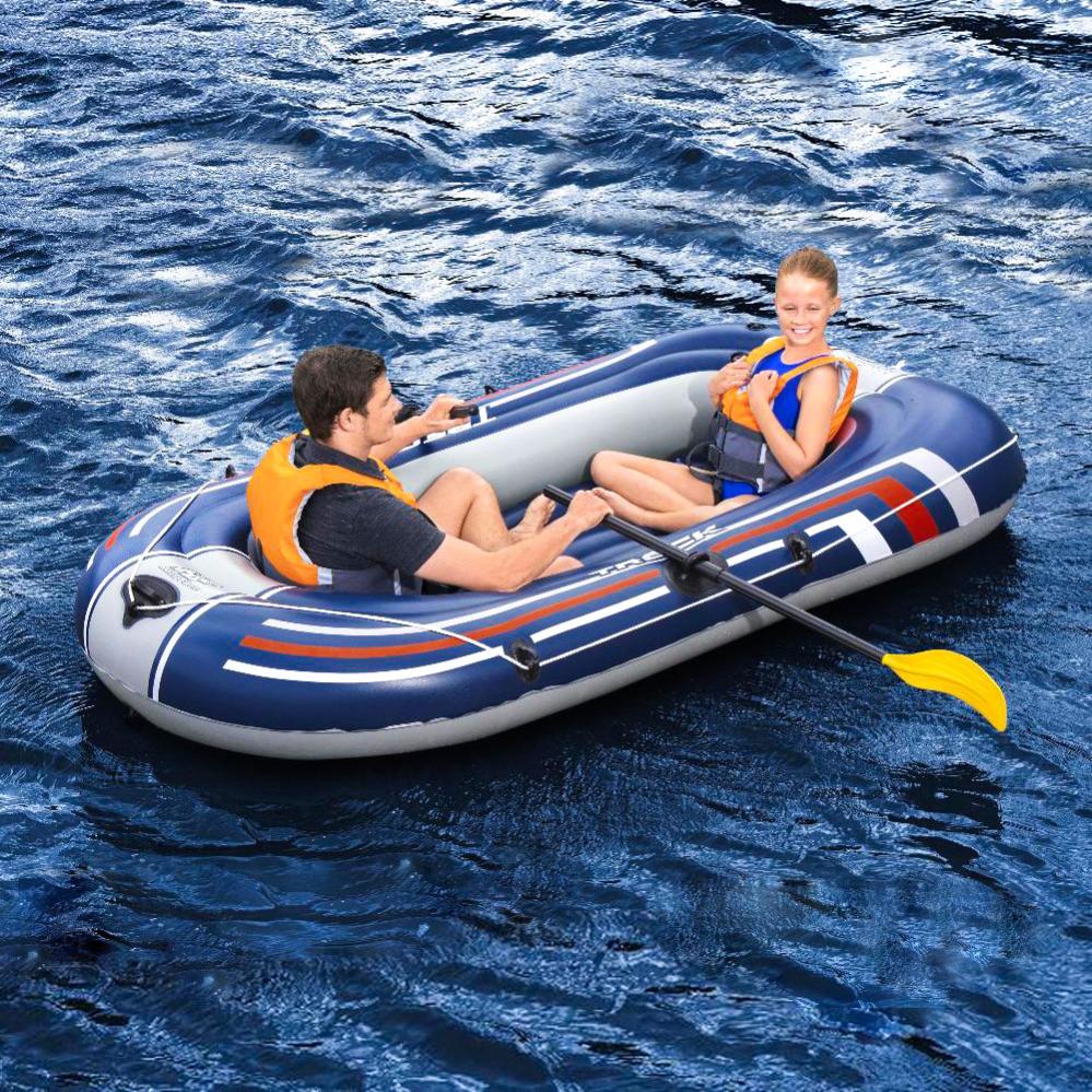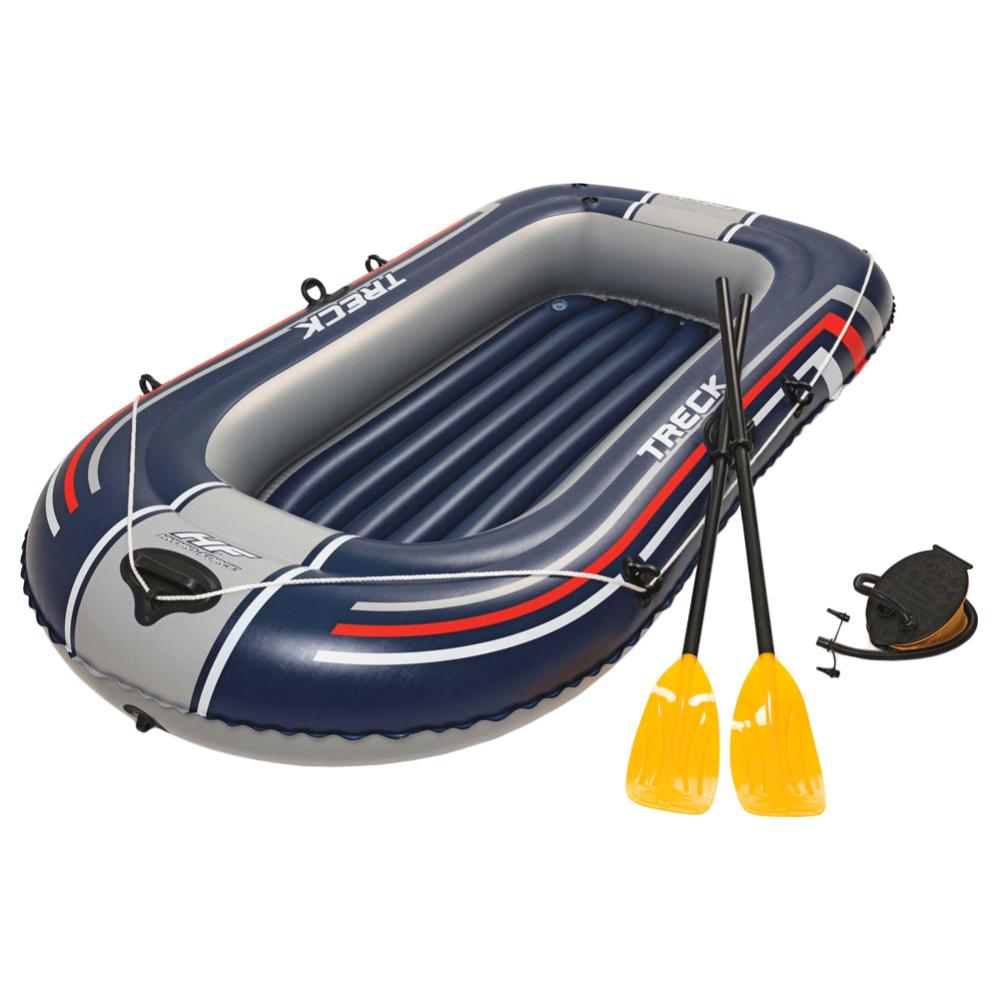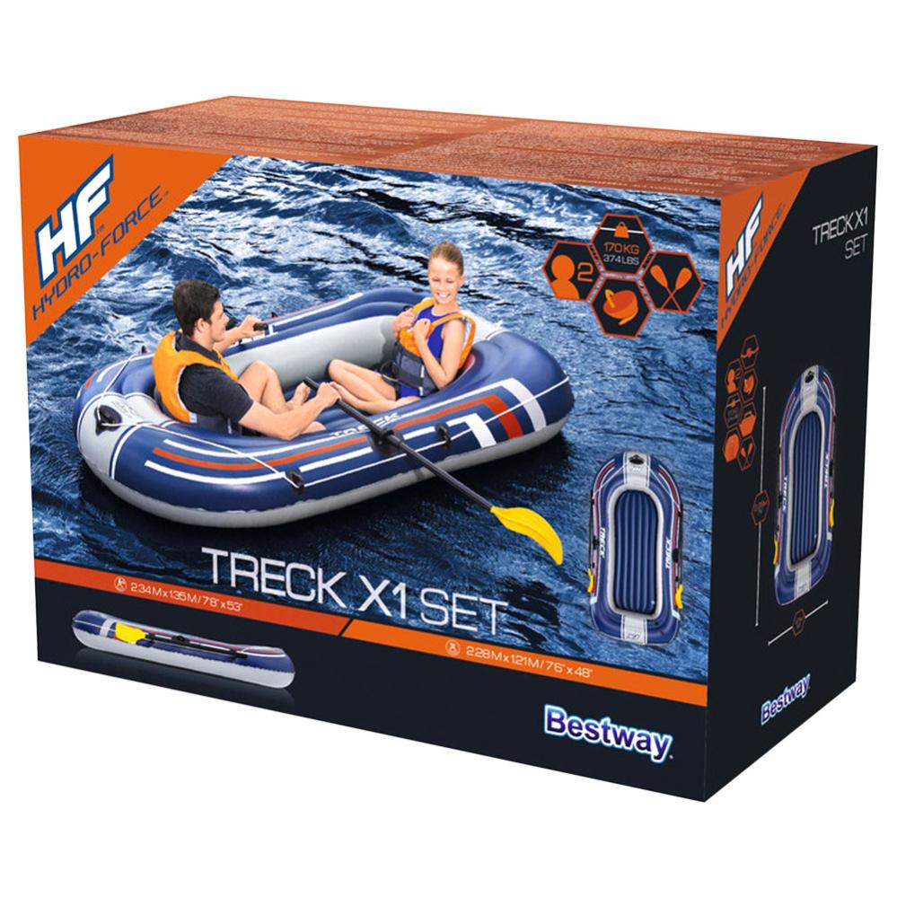 Hydro-Force Oppblåsbar Båt inkluderer en oppblåsbar båt av PVC-plast med oppblåsbar bunn for ekstra komfort og stabilitet, samt et tau langs kanten å holde seg i. Båten er ca 228 cm lang og 121 cm bred, og har en maksvekt på 170 kg. Inkluderer også et par årer og en fot-luftpumpe.