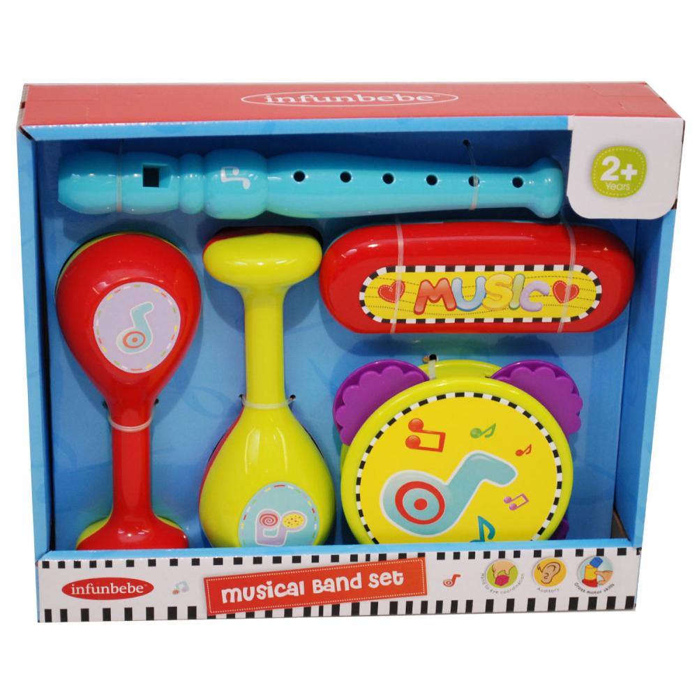 Dette instrumentsettet for barn inneholder fem fargerike musikkinstrumenter, inkludert munnspill, maracas, fløyte og tamburin. Perfekt for små musikere som vil utforske lyd og rytmer på en morsom måte. Skap herlige melodier og utvikle taktfølelsen.