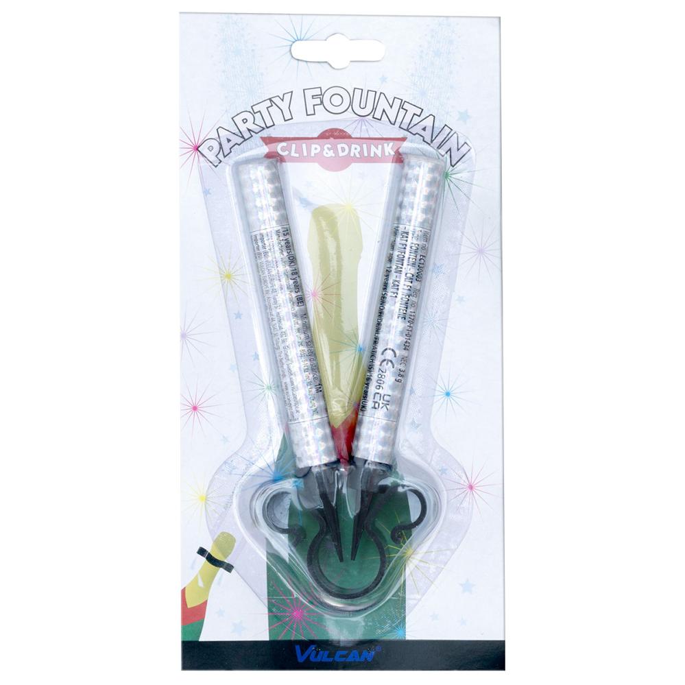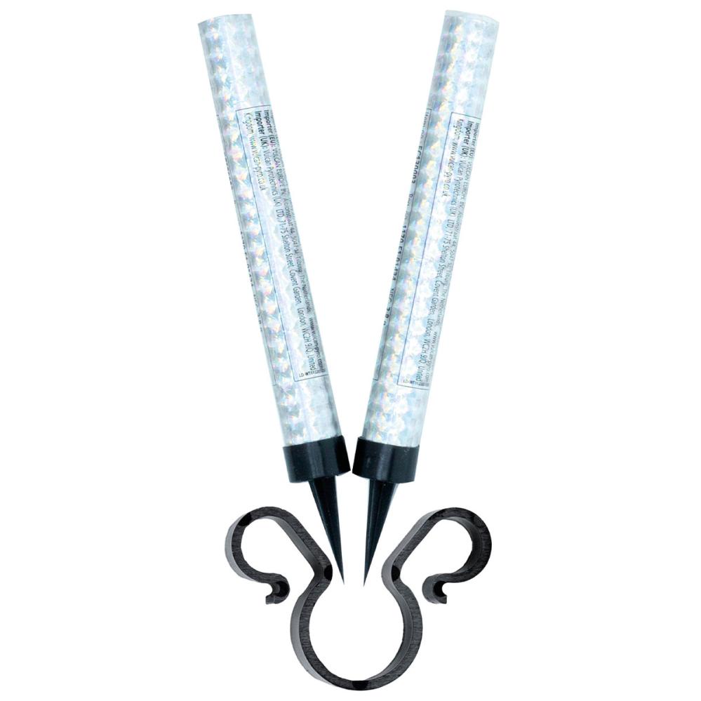Isfakler for Flaske 2-pakning består av to holografiske isfakler i sølvfarge som enkelt kan festes på en flaske med den medfølgende svarte festeanordningen.