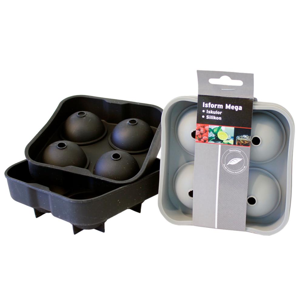 Isform for 4 Iskuler 12,5 x 5 cm omfatter en isform med en underdel og en overdel som gjør det mulig å lage opptil fire kuler om gangen.