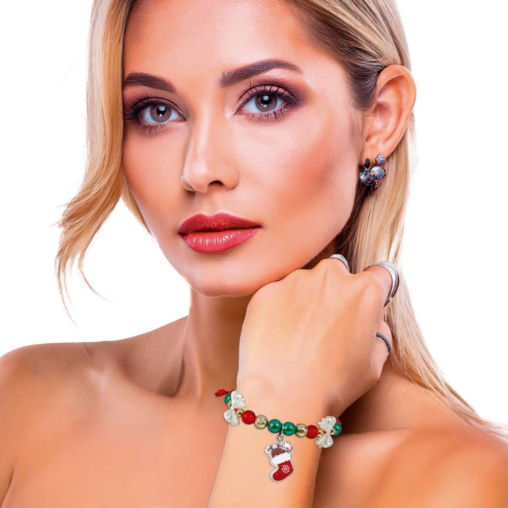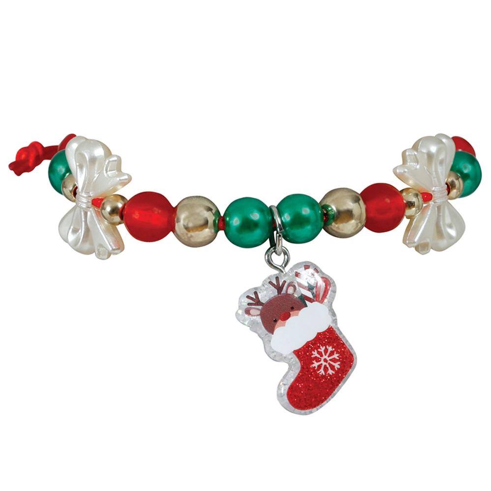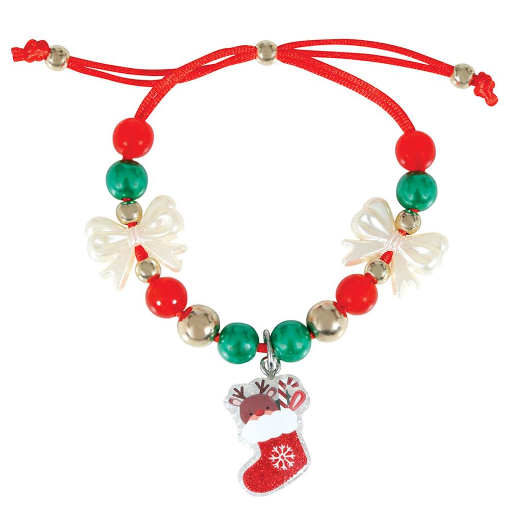 Sett stilen med denne lekne juleaccessoiren som mikser fargerike perler, hvite sløyfer og en glitrende julestrømpe med Rudolf. Det er et armbånd som passer perfekt både til hverdag og fest i julen.