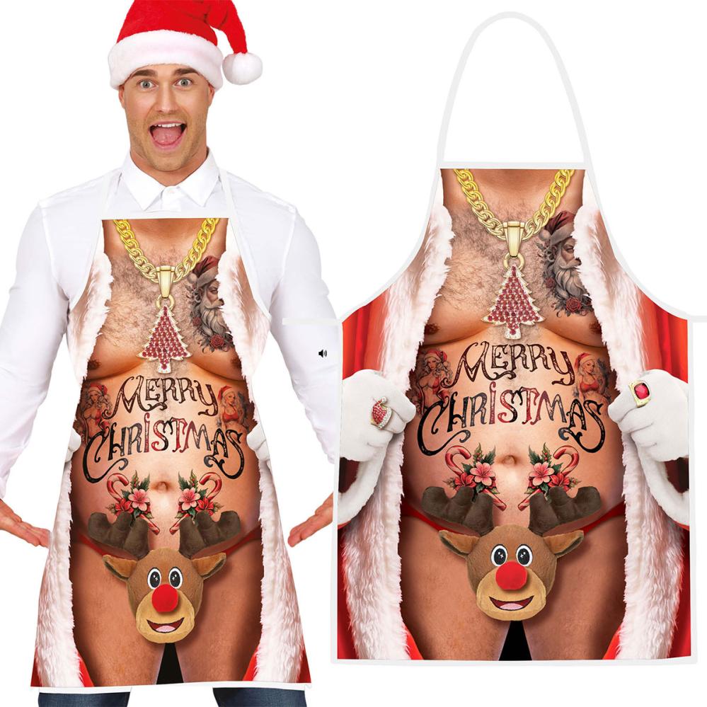 Dette er et juleforkle for deg som liker å ta julen med humor! Det er et morsomt og sexy forkle for en mann, med et lekent julemotiv som garantert får gjestene til å trekke på smilebåndet. Dette forkleet er perfekt for en voksen person som vil spre ekstra glede i julen.