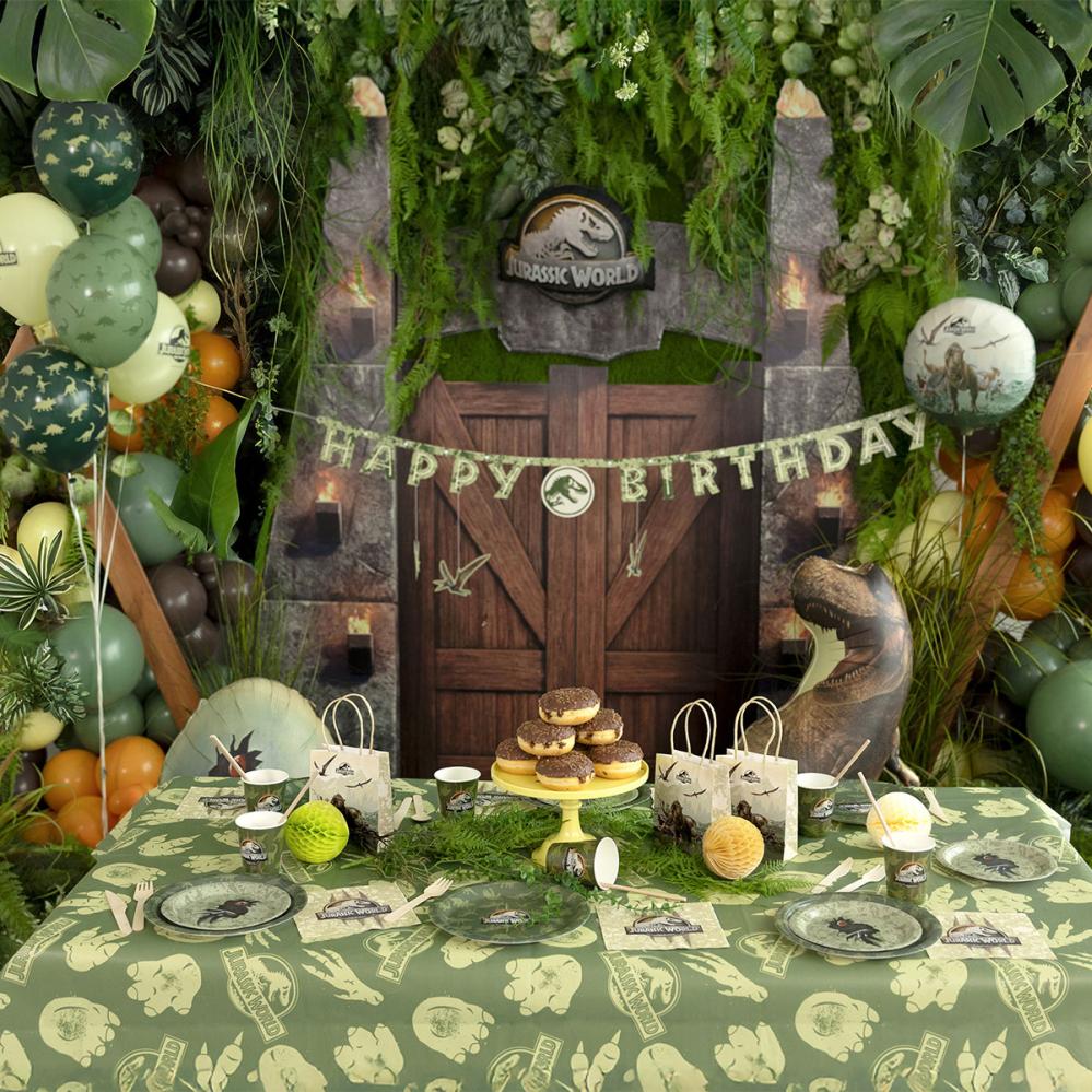 Med denne duken får festen din med dinosaurtema en fin dekorasjon, og den blir et praktisk festtilbehør for barn. Som dekorasjon til en Jurassic World fest er den et selvsagt valg blant tilbehør til barnebursdag når festen skal føles vill.
