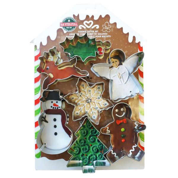 Kakeformer Jul inneholder et sett med kakeformer som fremstiller ulike julefigurer. Kakeformene er laget av metall og er ca 7,6-10,2 cm store.