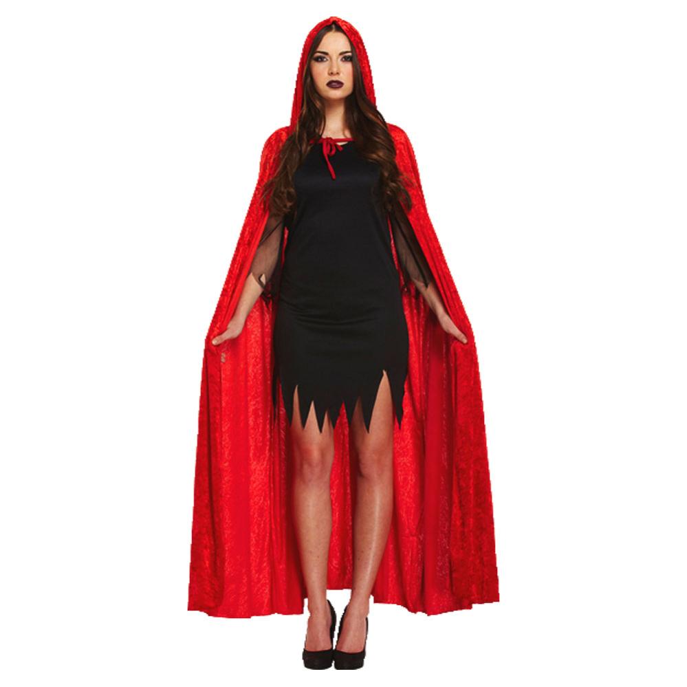 Legg til en elegant og litt mystisk touch til din maskeradekledning med denne lekre kappen av fløyelslignende materiale. Stilig rød kappe som blir en utmerket kappe for eksempelvis en Rødhette eller djevel maskeradeutkledning. Allsidig kappe som blir et utmerket tilbehør til mange forskjellige halloween- og maskeradekostymer.