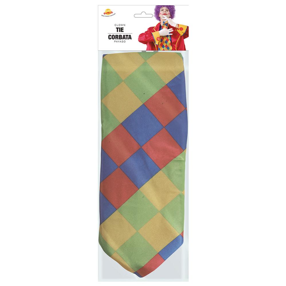 Klovne Slips 55 cm omfatter et slips med diamantmønster i gul, oransje, rød, grønn og blå.