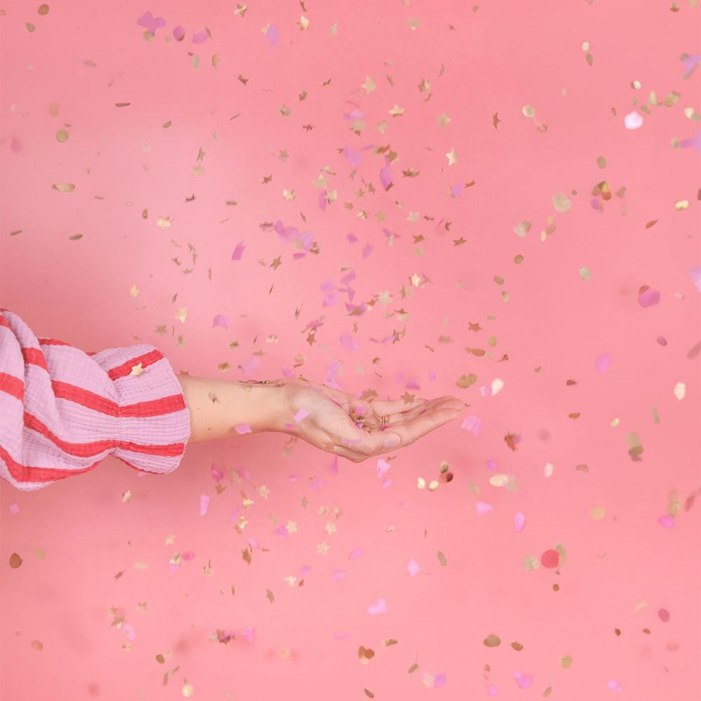Ved en spesiell anledning skaper en konfettikanon med konfetti formet som katter og stjerner i gull feststemning. Under feiringen blir disse gullstjernene en fantastisk dekorasjon sammen med annen konfetti. Det elegante konfettirøret sprer katter og stjernekonfetti i gull ved hver avfyring.