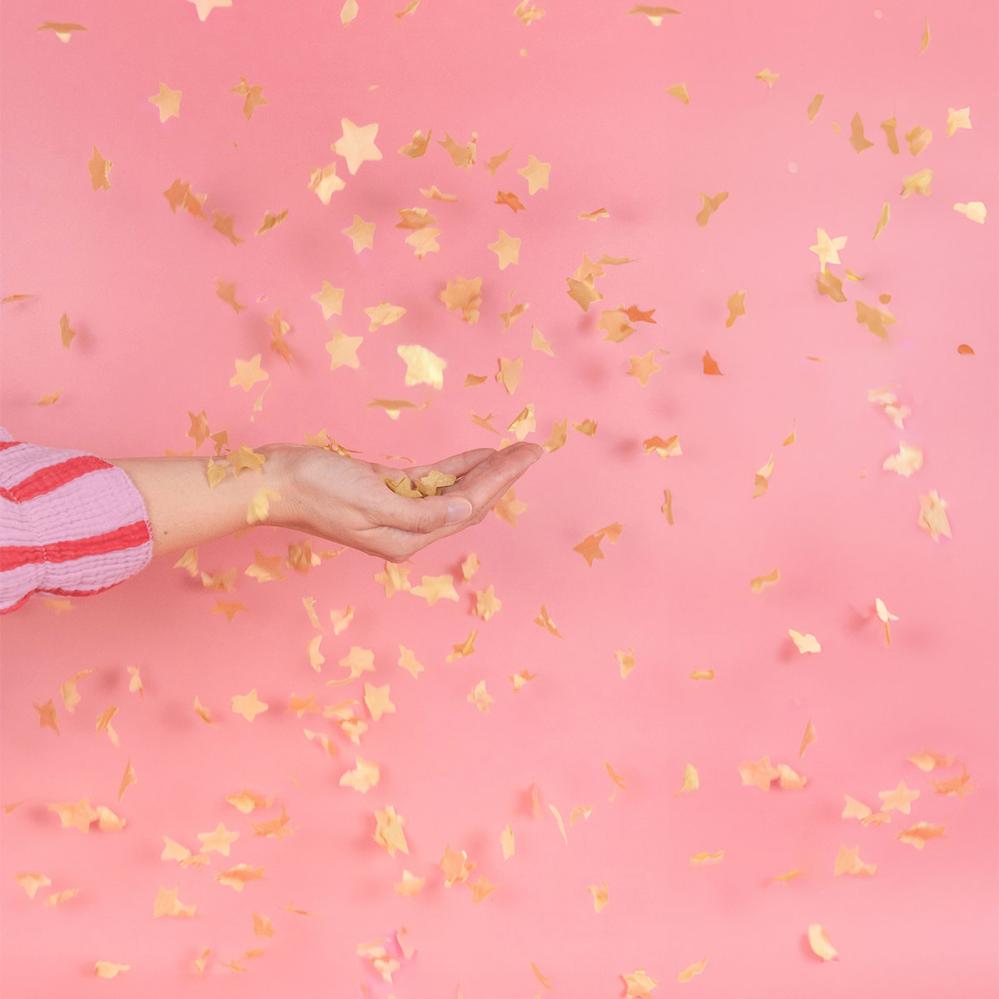 Denne konfettikanonen som sprer konfetti formet som stjerner i gull gir en festlig feiring, spesielt ved anledninger som nyttår. Ved å vri på dette konfettirøret glitrer stjernekonfetti i gull over gjestene. Når konfetti i form av gullstjerner svever gjennom luften skapes en minneverdig stemning.
