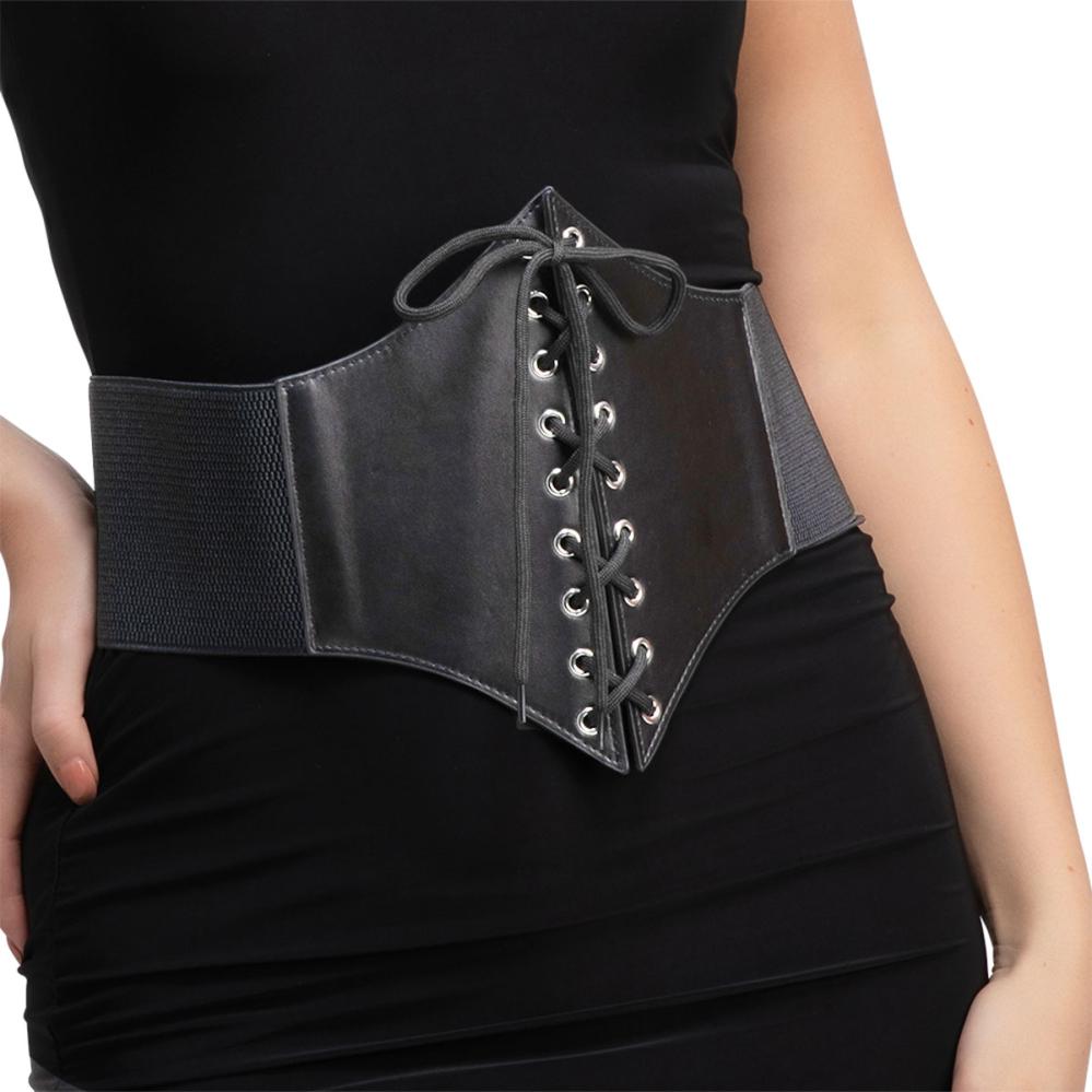 Å bære et korsettbelte gir umiddelbart en dramatisk følelse, og akkurat dette svarte korsettet løfter hele stilen din på nulltid. De svarte snøringsdetaljene foran skaper et blikkfang som ikke kan ignoreres. Perfekt til fest eller når hverdagen trenger et løft.