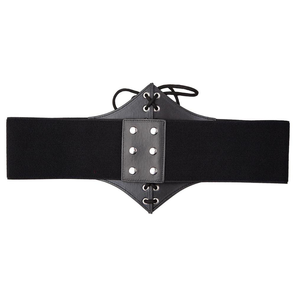 Korsettbelte Svart omfatter et justerbart svart korsettbelte med snøring foran og trykknapper bak for enkel lukking.