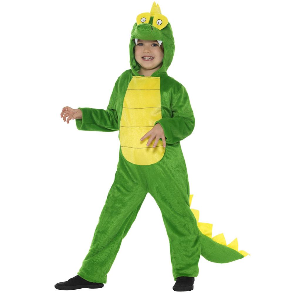 Krokodille Kostyme Barn er et barnekostyme som forestiller en krokodille i grønt og gult. Kostymet består av en jumpsuit med hette og hale.