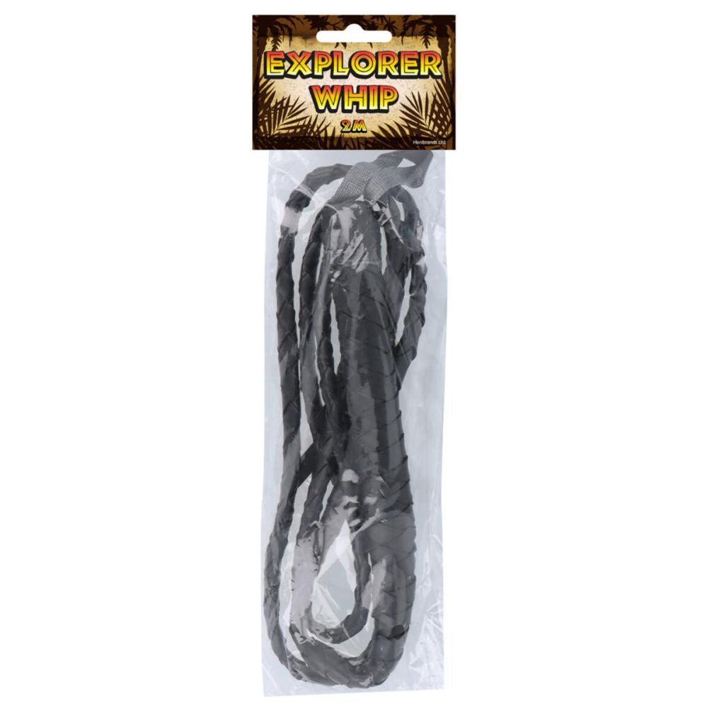 Sett prikken over i-en på cowboymaskeradekostymen din med denne to meter lange svarte pisken i læraktig flettet polyester. Denne pisken er et tøft maskeradetilbehør som løfter hele looken og fungerer perfekt som et cowboytilbehør på festen.
