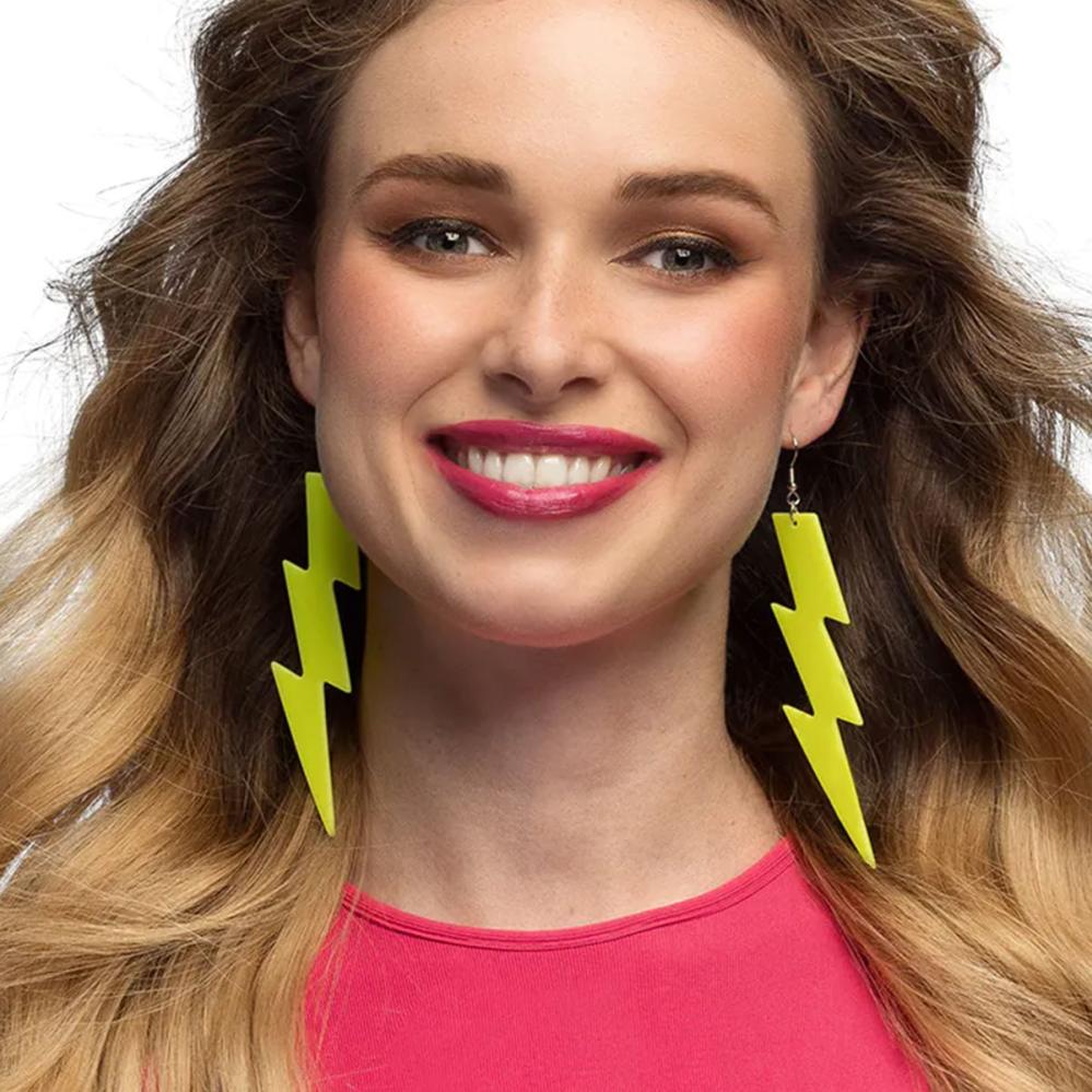Til en kostymefest med retrotema passer øredobber i form av lyn ekstra godt i fargen gul og er inspirert av 80- og 90-tallet, med en uttrykksfull neonstil. Det lette materialet og den sikre lukkingen gjør dem komfortable hele kvelden.