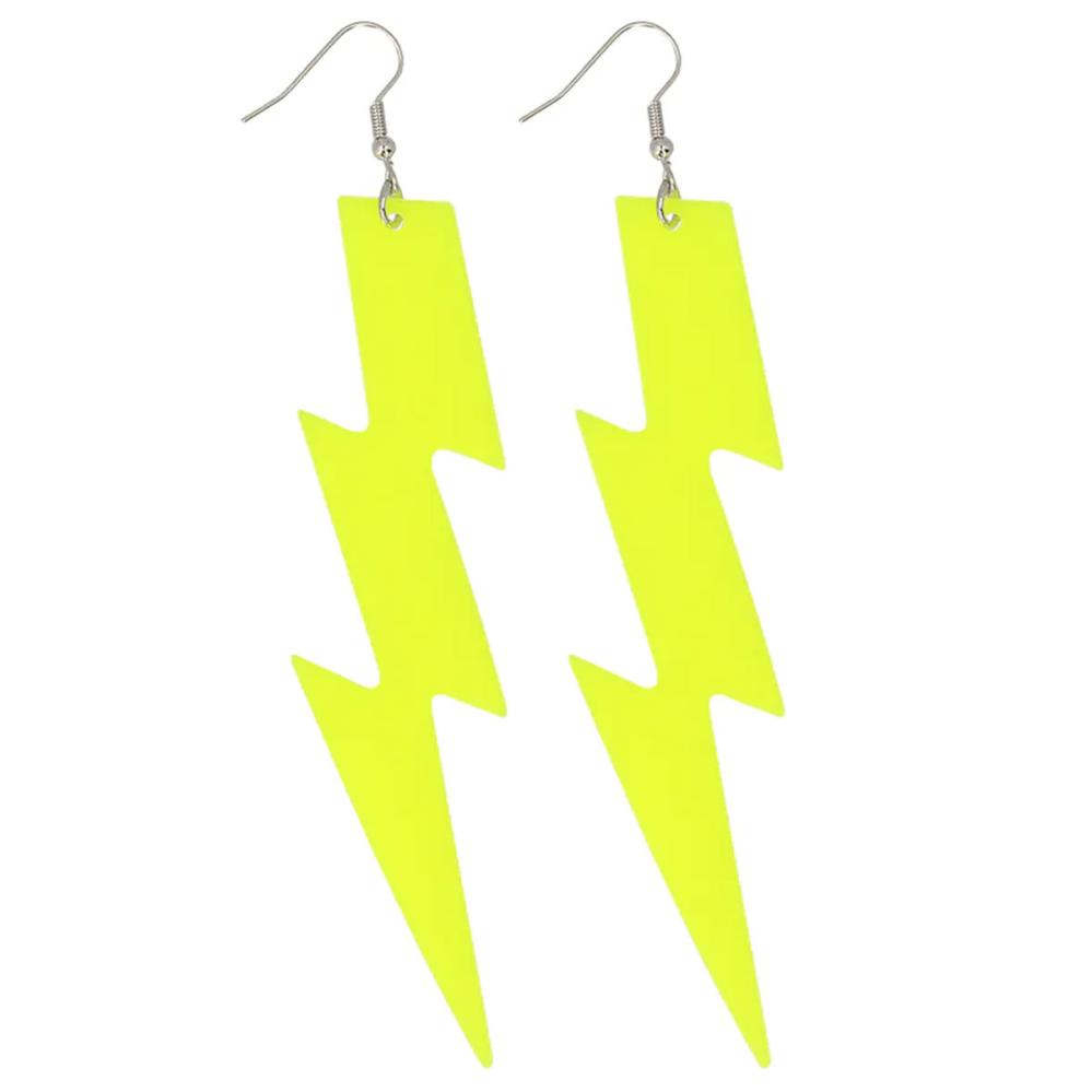 Lyn Øredobber Neongul omfatter et par neongule øredobber i form av lyn.