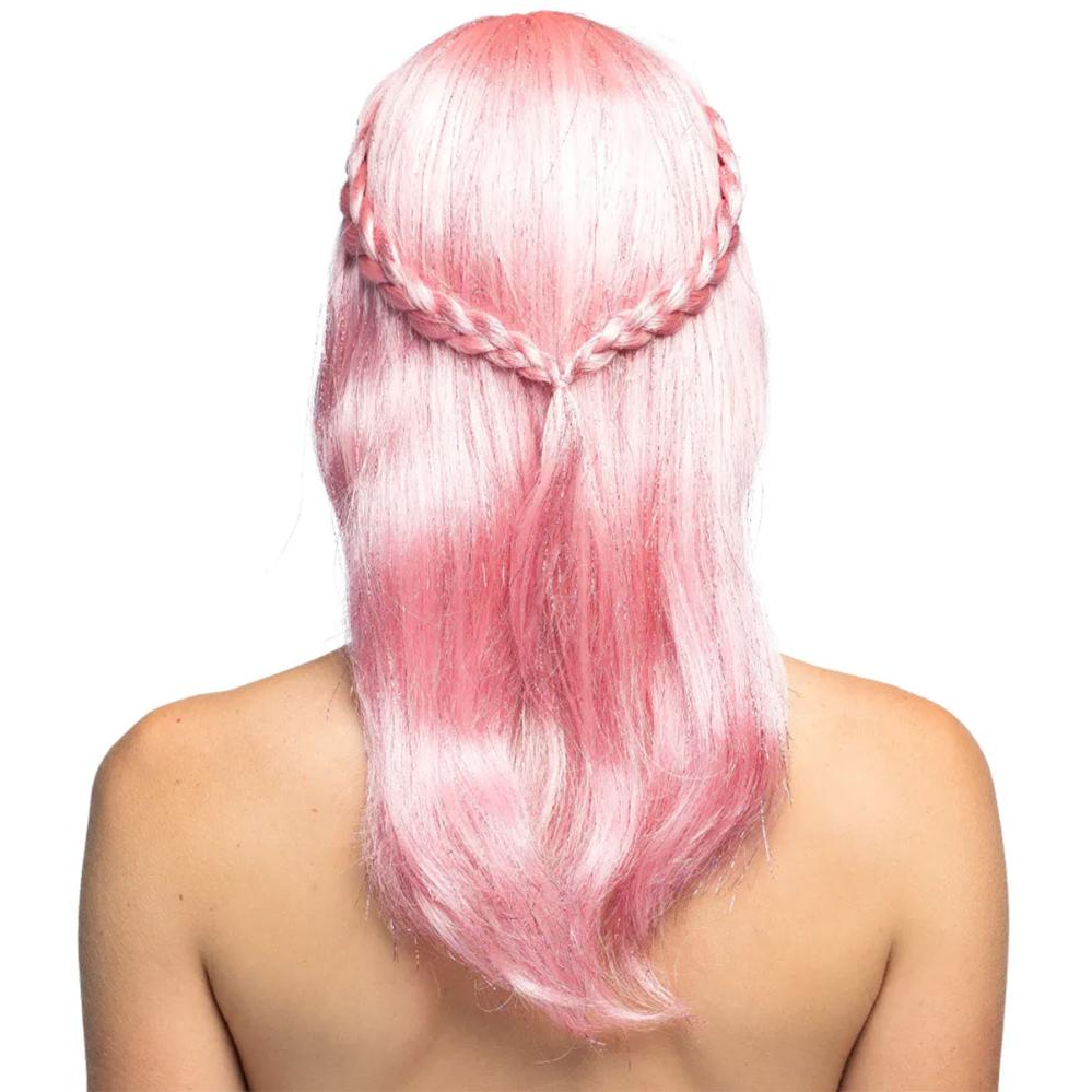 Gi looken din det lille ekstra med denne lyserosa parykken med fletter og skimrende tråder. Den er perfekt som en cosplayparykk når du vil skille deg ut med stil og skape en fantasifull karakter.