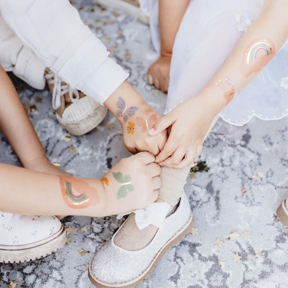 - Midlertidige tatoveringer med enhjørning, sommerfugler og en regnbue