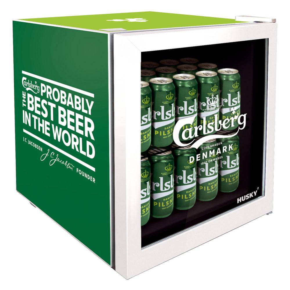 Lei av å alltid løpe og hente øl eller brus på kjøkkenet, drikke lunken øl eller flat brus? Kanskje du har ditt eget kontor eller arbeidskolleger som ikke forstår forskjellen på ditt og mitt. I dette lille Carlsberg minikjøleskapet får du plass til opptil 40 bokser av din favorittdrikke. Minikjøleskapet Carlsberg er perfekt for å gjemme bort det du vil ha for deg selv. Siden dette kjøleskapet i mini størrelse er så stille, kan du oppbevare det litt hvor du vil, soverommet, ved siden av din favorittstol eller i hjemmebaren. Til tross for å være et lite ølkjøleskap, har det mange fine funksjoner, en avtagbar hylle, justerbar temperatur og du kan velge hvilken vei døren skal åpnes. Det kan være at dette minikjøleskapet er det beste i verden.
