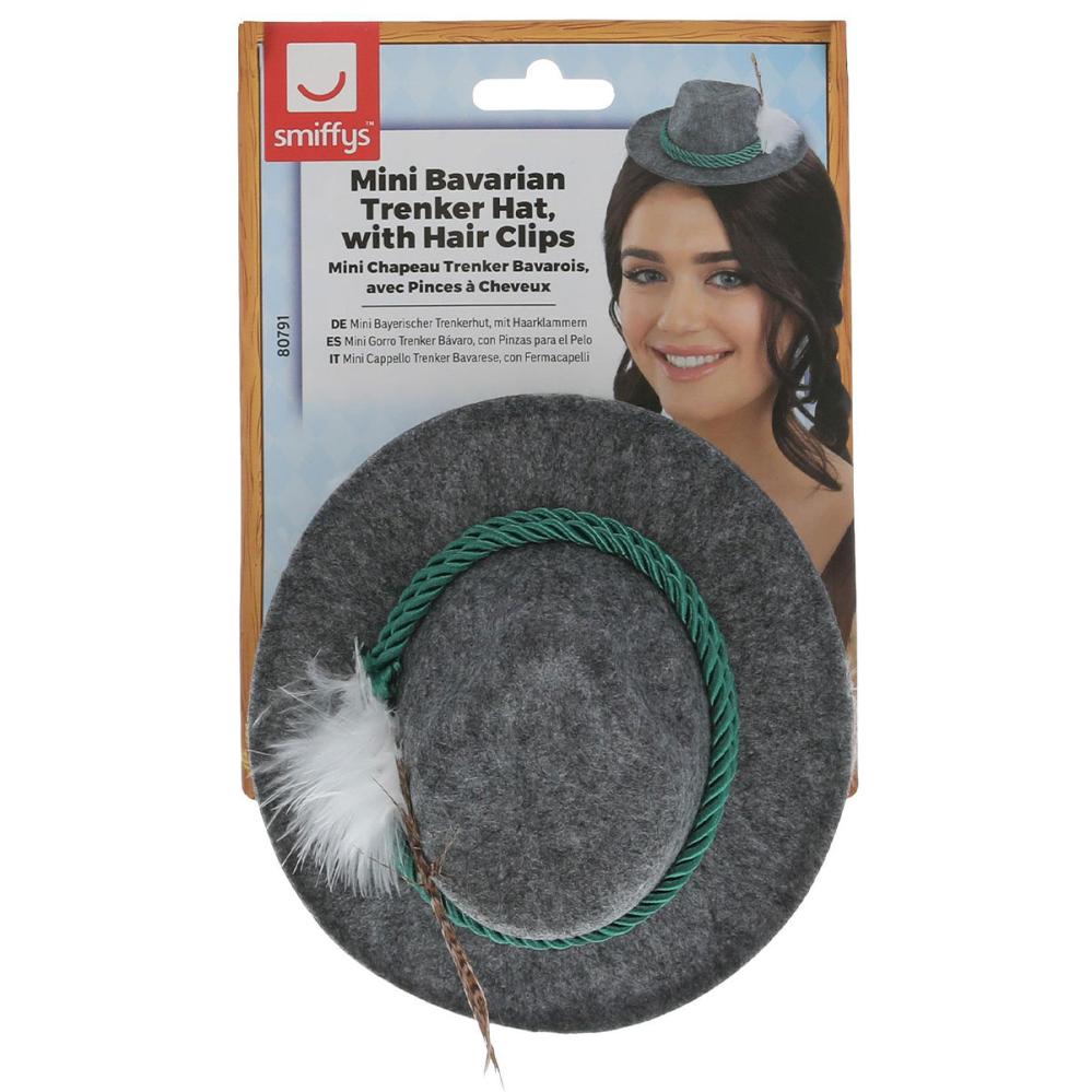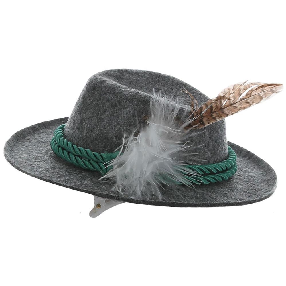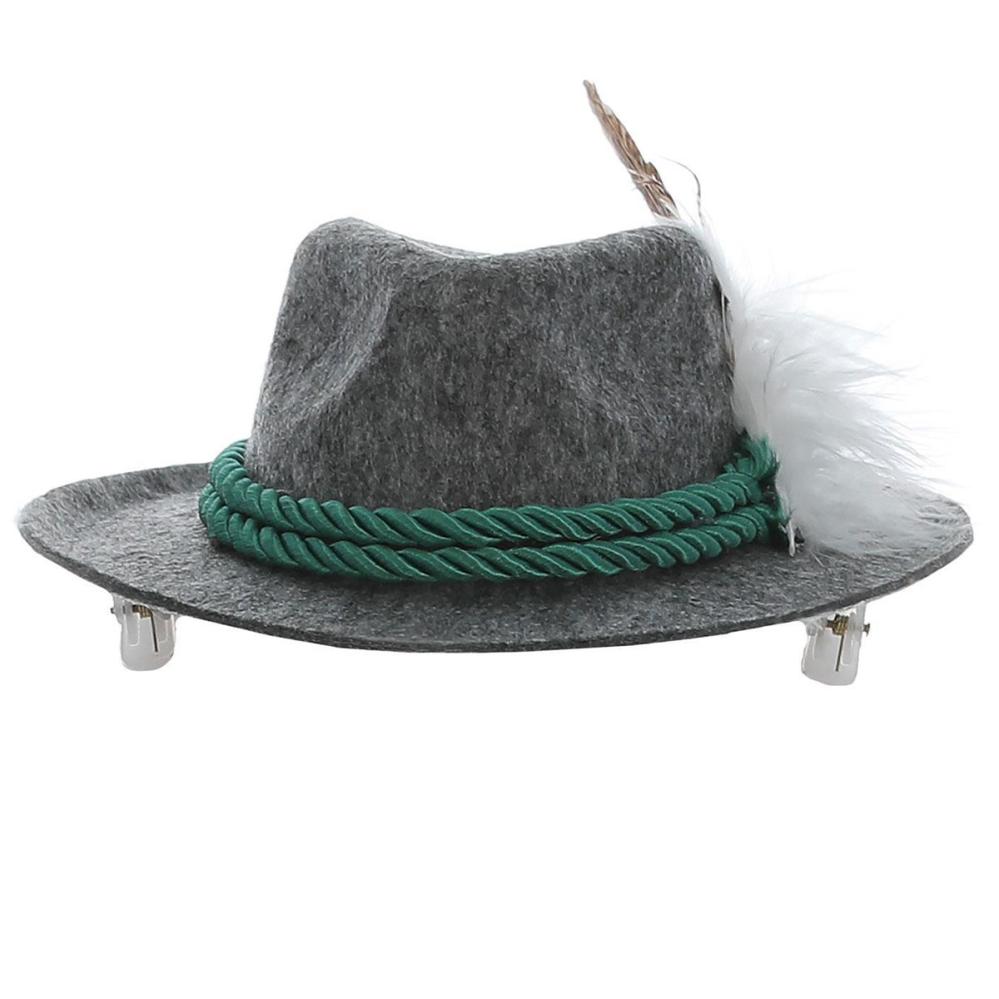 Sett stilen med en sjarmerende grå tyrolerhatt i miniformat, perfekt som Oktoberfest- eller bayersk hatt. Fjær, grønne snorer og hårspenner gjør den til et morsomt tilbehør til Oktoberfest-maskerade som garantert drar til seg oppmerksomhet.