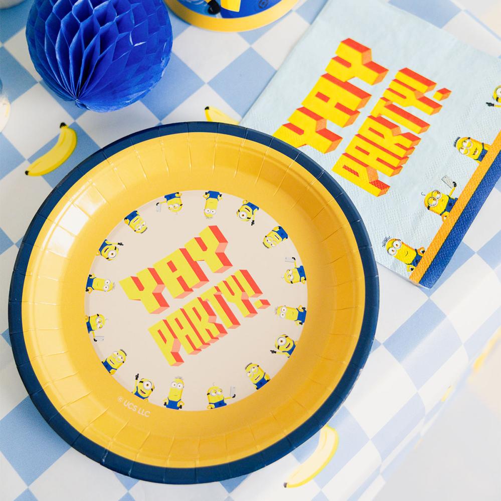 Med Minions på bordet blir tallerkenene en lekfull dekorasjon til et tema der festtilbehør for barn passer fint i selskapet. I et selskap med Grusomme meg passer de fint. Som tilbehør til barnebursdag bidrar de til en sjarmerende borddekking.