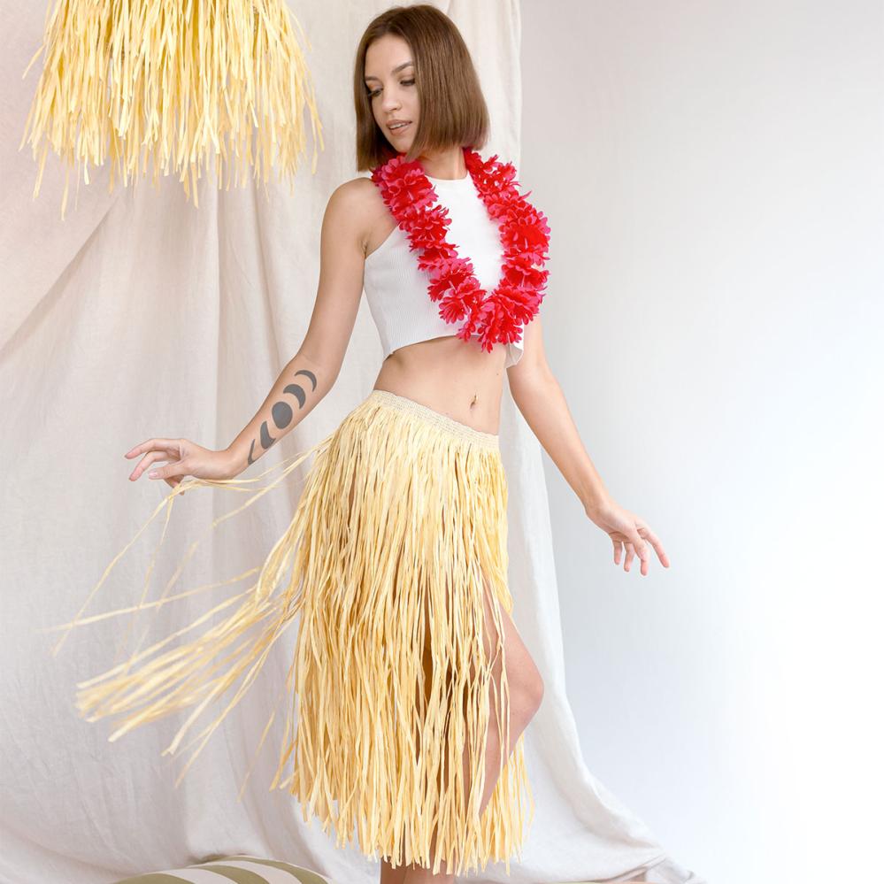Svev inn på Hawaii-tema festen med et stråfarget hula hula skjørt som gir feriestemning med en gang. Perfekt som Hawaii-skjørt til en kostymefest der du vil skille deg ut med en klassisk og leken stil.