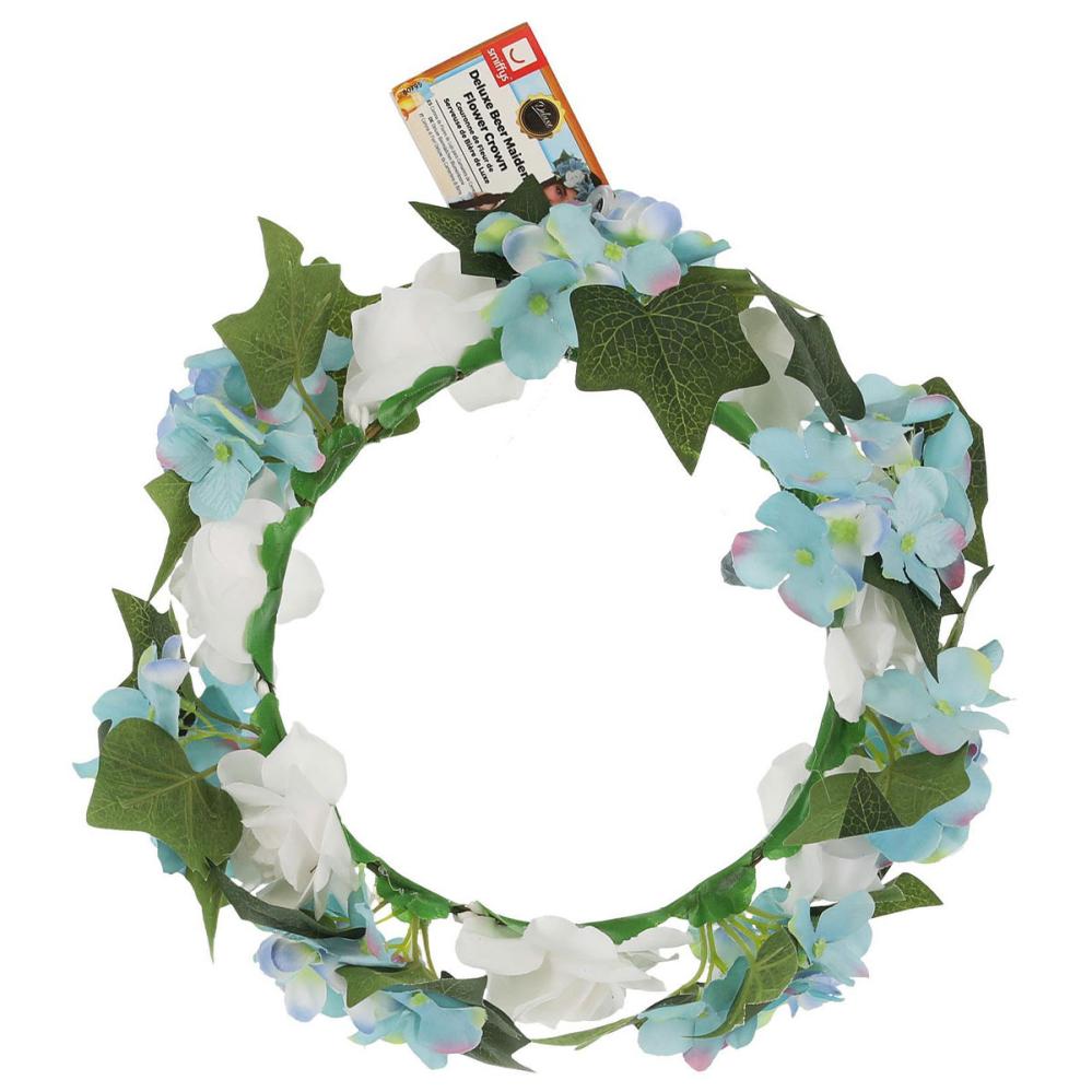 Sett stilen med denne Oktoberfestkransen som løfter antrekket ditt med hvite roser, blå blomster og grønne blader. Det er et perfekt tilbehør til Oktoberfest når du vil skille deg ut i festmylderet.