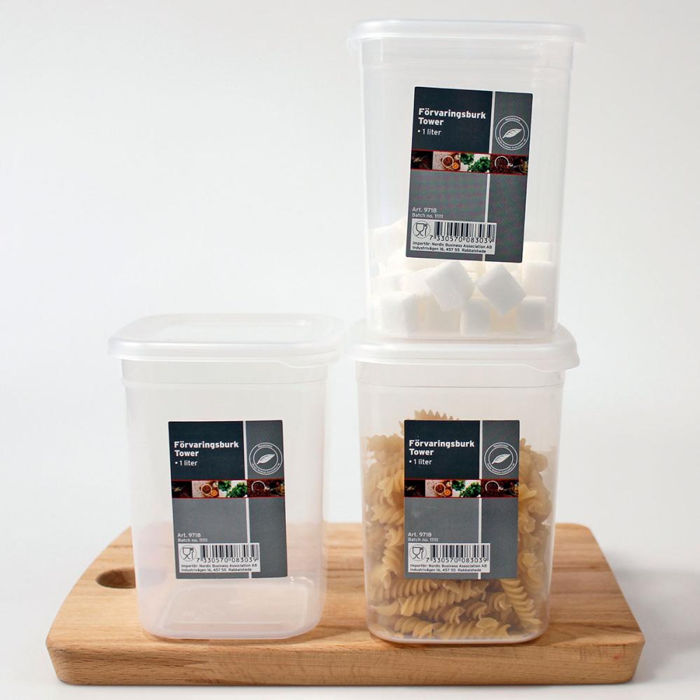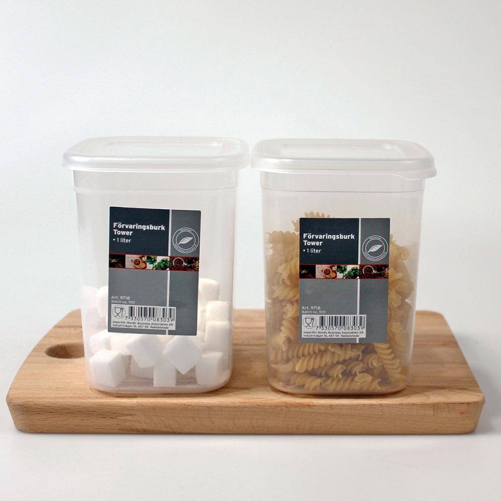 På kjøkkenet blir oppbevaringen enkel når en plastboks på 1 liter brukes til tørrvarer og andre småting. Med lokk holder plastboksen innholdet trygt på plass. Som oppbevaringsbeholder passer den godt til småting på kjøkkenet. Med lokk fungerer den dessuten som en plastbeholder for småkaker og andre bakverk.