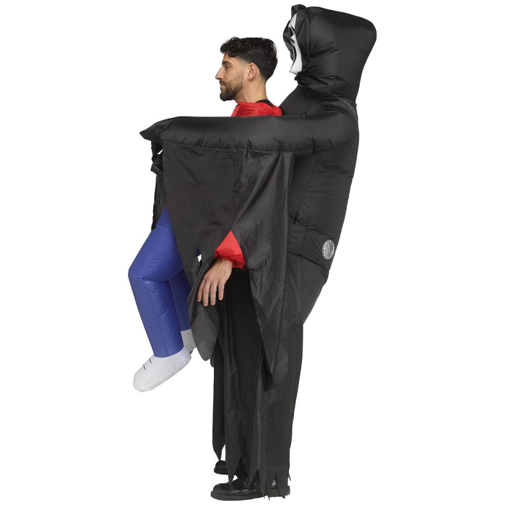 Oppblåsbar Ghostface Carry Me Drakt omfatter en oppblåsbar jumpsuitdrakt som gir illusjonen av at Ghostface-spøkelset fra Scream-filmene bærer på deg.