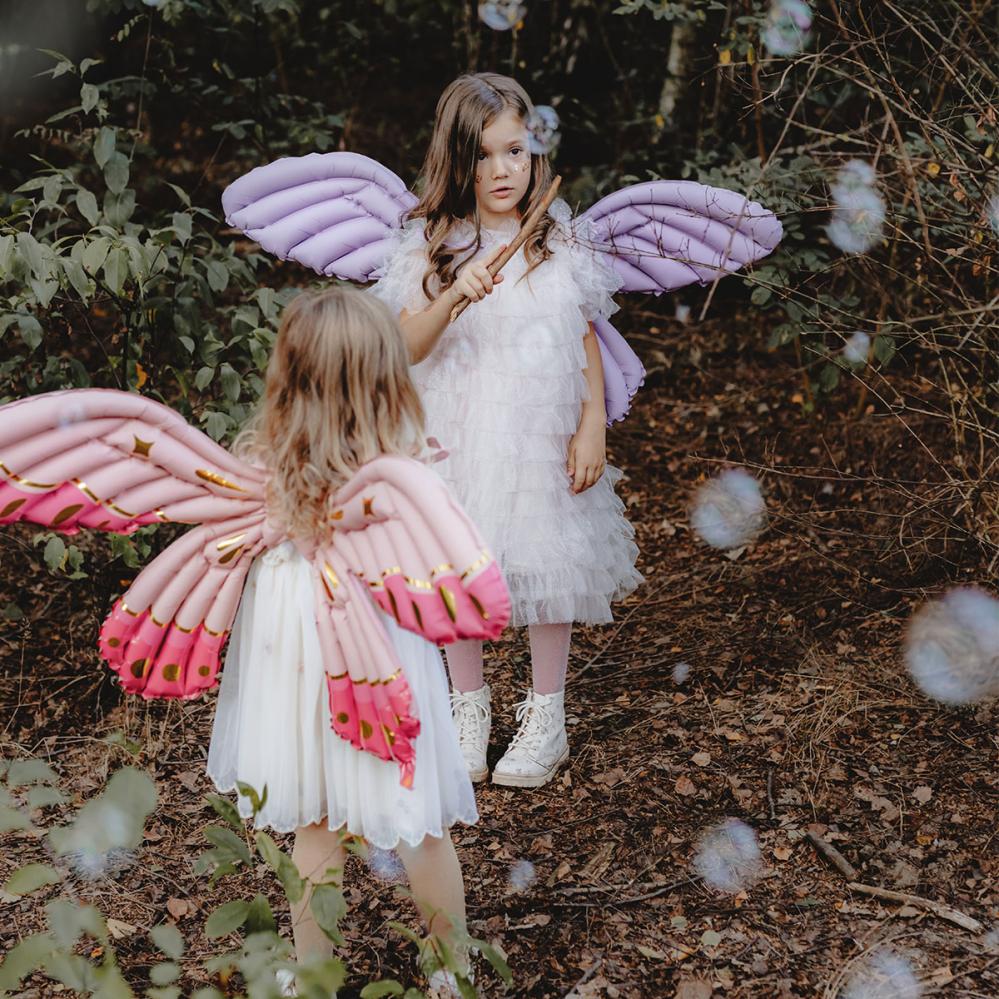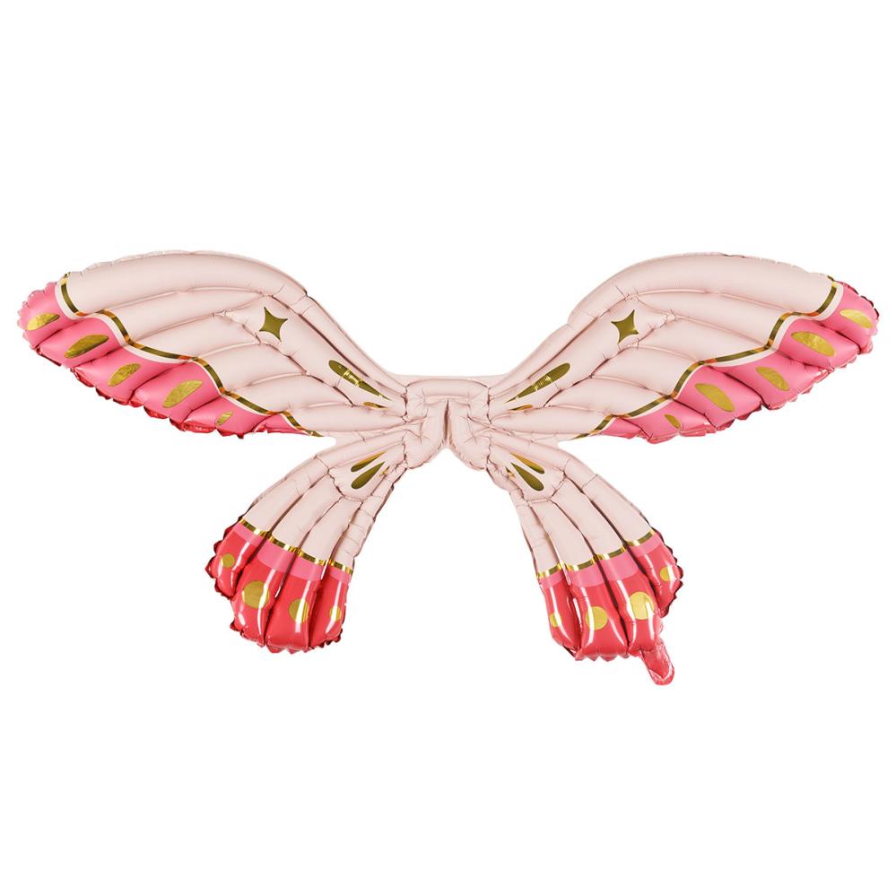 Skap en magisk stemning med disse sommerfuglvingene i matt rosa med gyldne detaljer. De oppblåsbare vingene i form av en folieballong kan festes på ryggen eller brukes som dekorasjon. Perfekt til kostymefest, dyrefest og andre festlige anledninger.