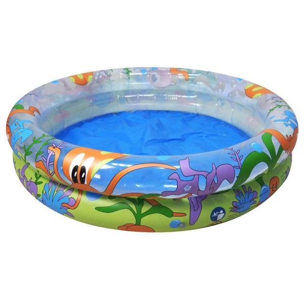 Gjør dere klare for sommerens varme dager med dette superfine barnebassenget! En virkelig herlig oppblåsbar basseng i hvitt og blått med dekorative motiver av søte fisker som vil by på behagelige og avkjølende bad i sommervarmen. Perfekt basseng for alle barn som liker å bade og leke i vannet.