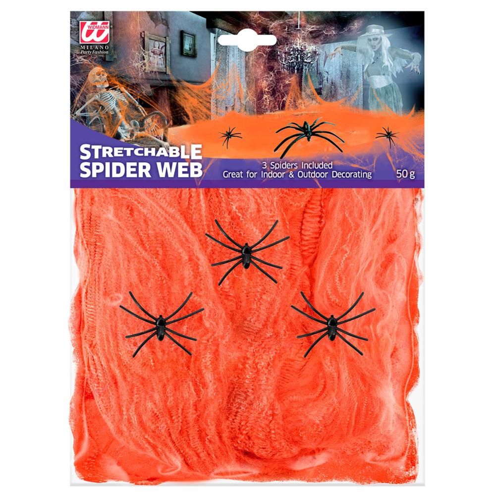Info om Oransje Spindelvev med Edderkopper 50g: