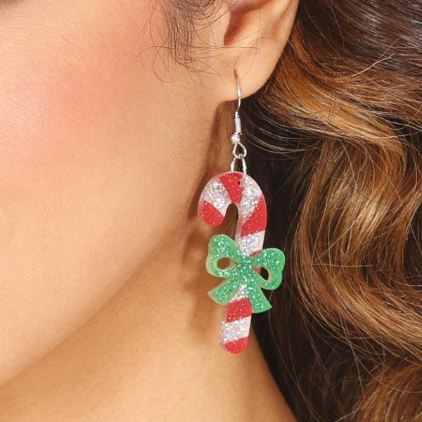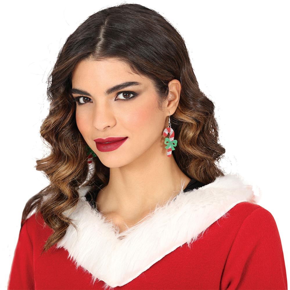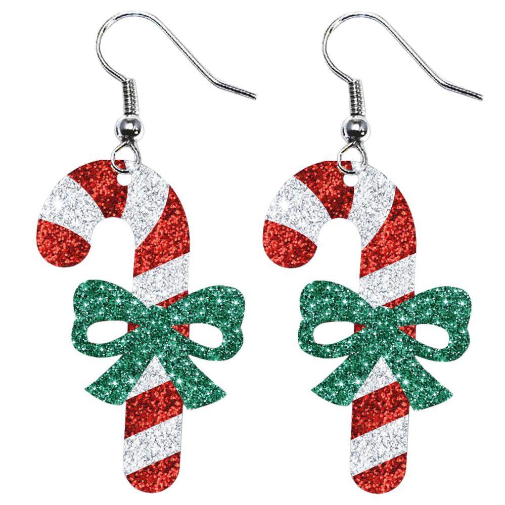 Sett stilen med juleøredobber formet som glitrende polkagriser, pyntet med grønne sløyfer for ekstra sjarm. Disse polkagrisene er perfekte for deg som elsker øredobber med julemotiv og festlige juleaccessoirer.
